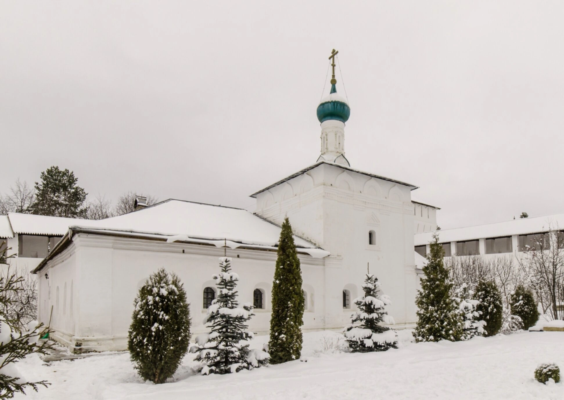 Церковь Илии Пророка была возведена в 1670 году к северу от Рождественского собора. Этот храм является одним из интереснейших образцов русского зодчества второй половины XVII века. Он был построен как больничная церковь, что отражало традицию монастырского служения ближним. Архитектура храма отличается строгостью и благолепием: белоснежные стены, устремлённый в небо зелёный купол, увенчанный златым крестом, который сияет в лучах зимнего солнца.
