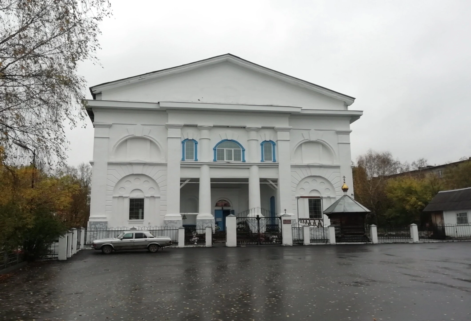 Общее освещение и цветовая гамма фотографии передают атмосферу пасмурного осеннего дня, что создаёт особое настроение умиротворения и духовной сосредоточенности. Храм Иоанна Предтечи, основанный в XIX веке, пережил разные исторические периоды, включая годы гонений на Церковь, и ныне является действующей православной святыней, несущей свет веры жителям уральского города.