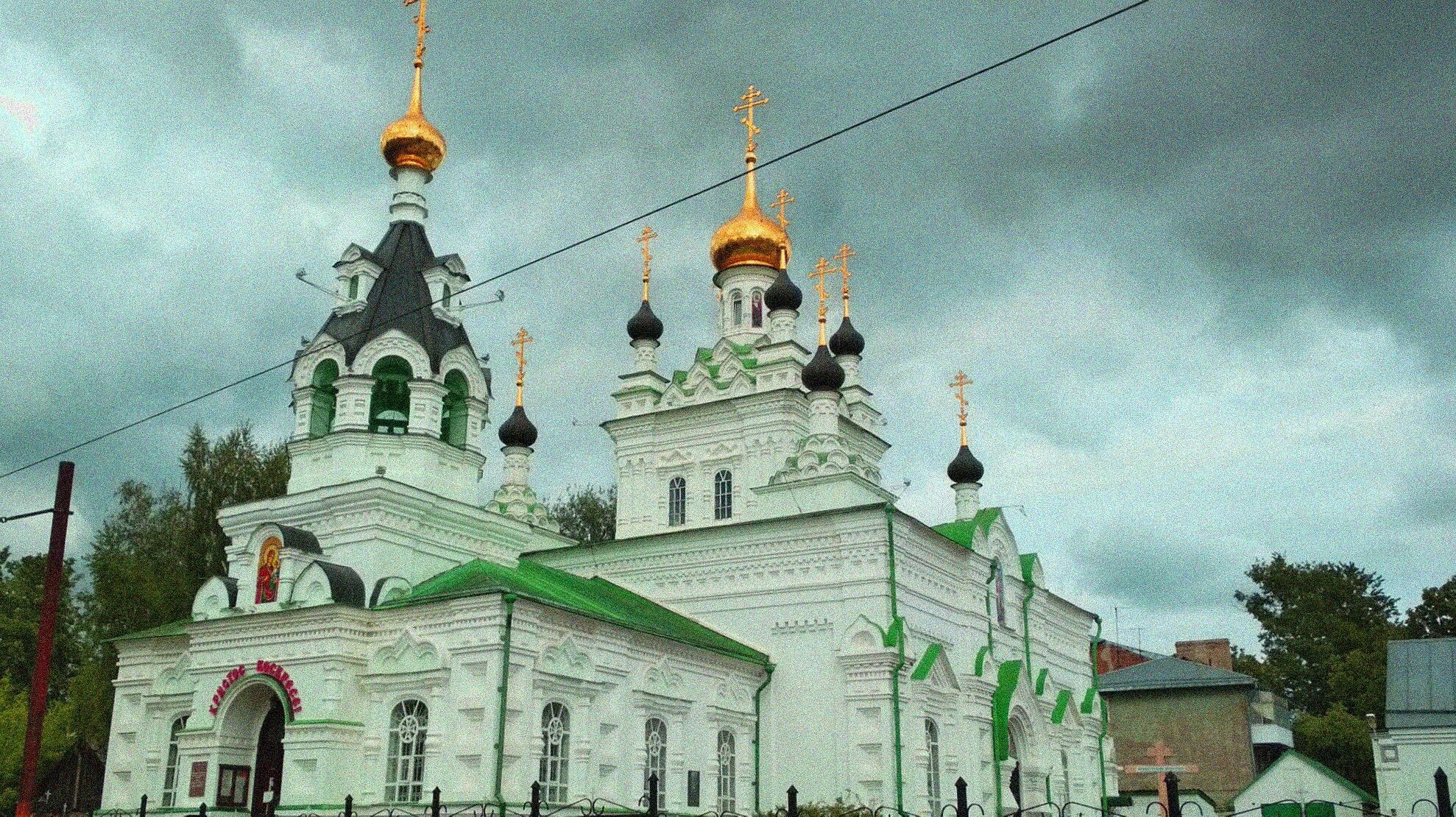 Храмовый комплекс обнесён оградой, а его территория благоустроена и утопает в зелени, что создаёт ощущение уединённости и покоя даже в городской черте. Пасмурное небо с облаками, запечатлённое на снимке, придаёт изображению особую, возвышенную атмосферу, напоминая о вечном и непреходящем. Данная фотография не просто фиксирует внешний вид здания, но и передаёт глубокое духовное содержание этого святого места, являющегося одной из ключевых православных святынь и архитектурных доминант города Орла.