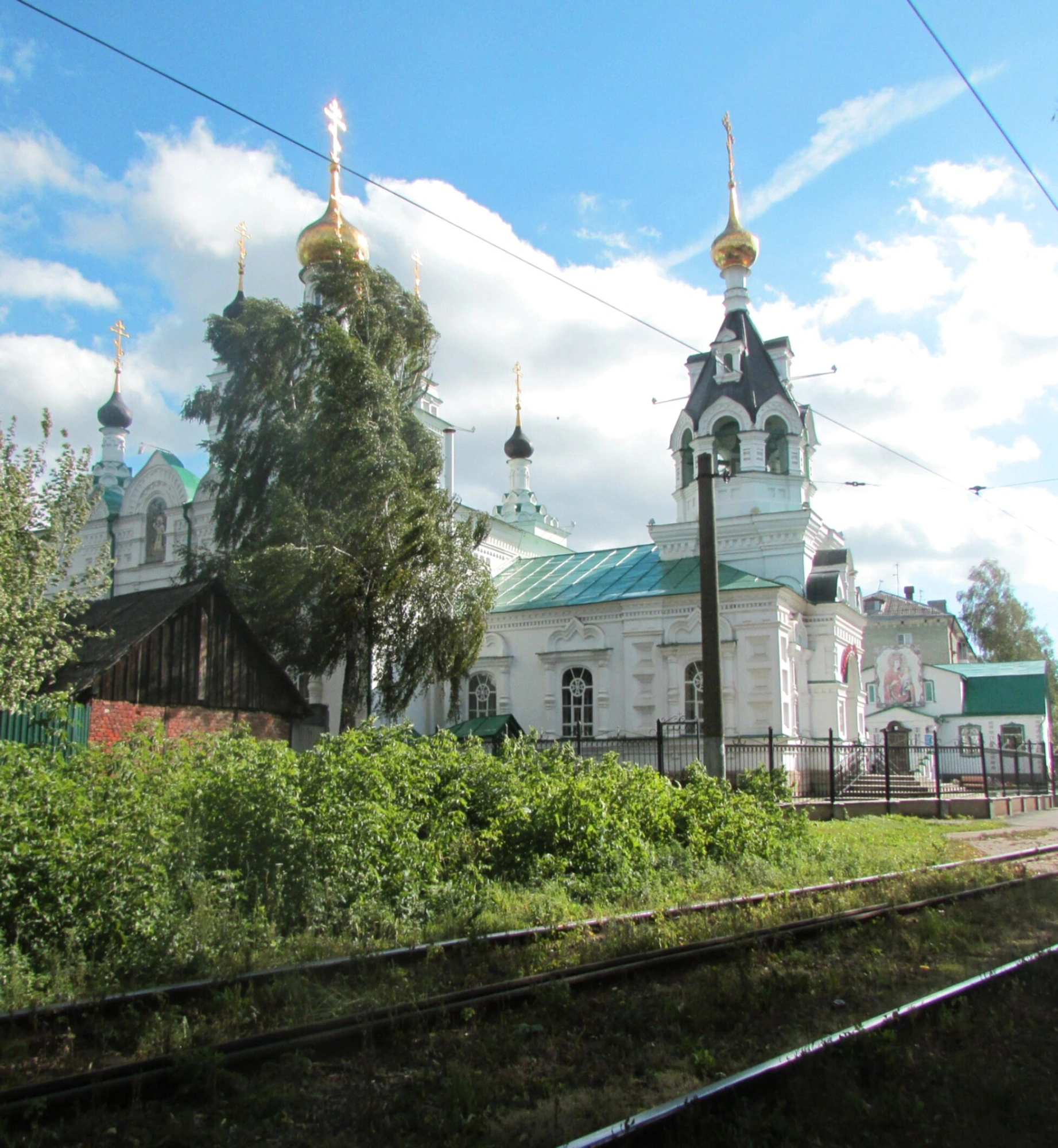 На представленной фотографии запечатлён храм в честь Иверской иконы Божией Матери, расположенный в городе Орле на Привокзальной площади. Этот православный храм, являющийся неотъемлемой частью духовной жизни города, был возведён в конце XIX века по проекту архитектора Ивана Тибо-Бриньоля. Освящение церкви состоялось в 1902 году, и с тех пор она является одним из узнаваемых архитектурных символов Орла.