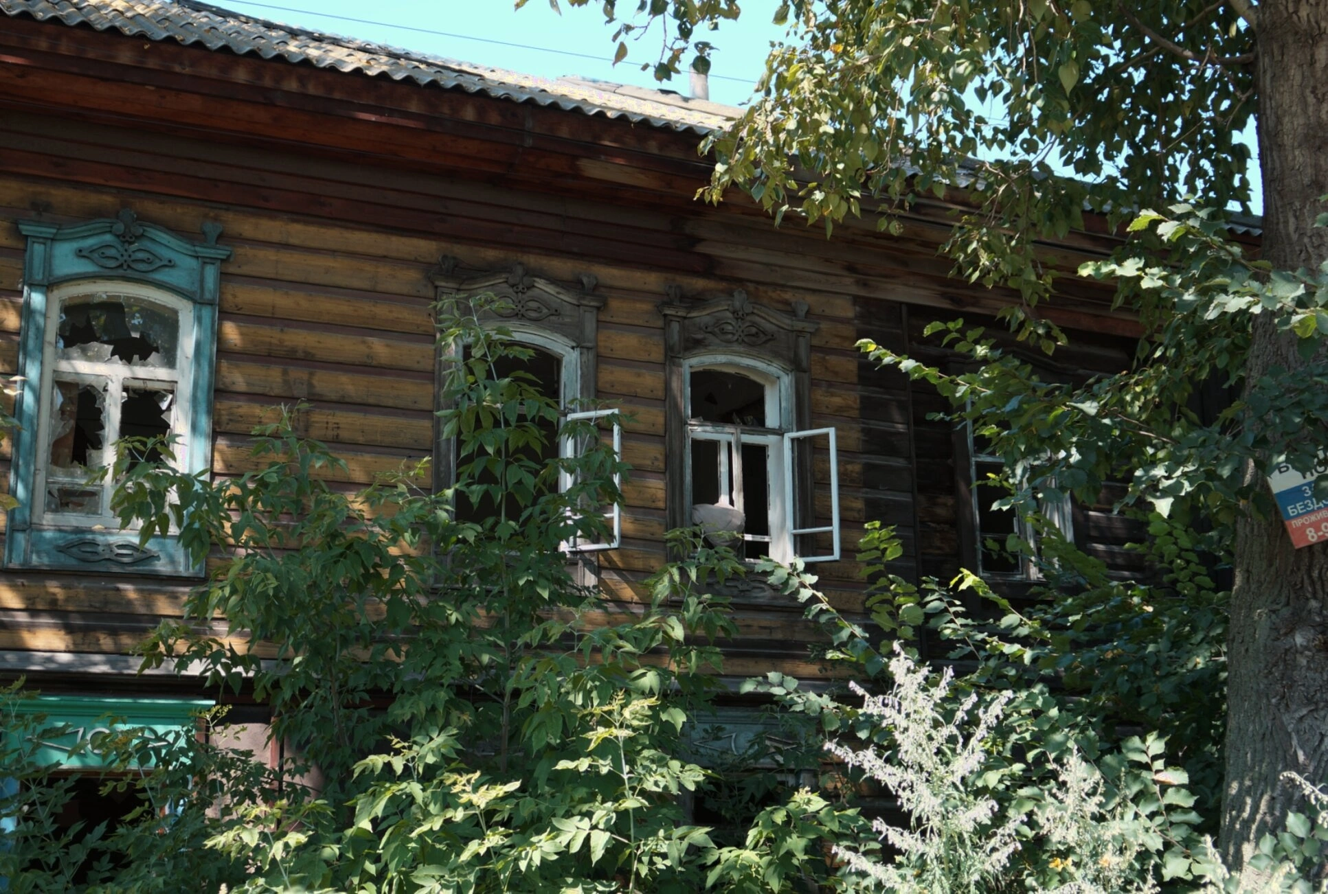 На представленной фотографии запечатлен исторический облик Храма Казанской иконы Божией Матери, расположенного в городе Бийске. Святыня представляет собой прекрасный образец деревянного храмового зодчества, сохранившего традиции православной архитектуры.