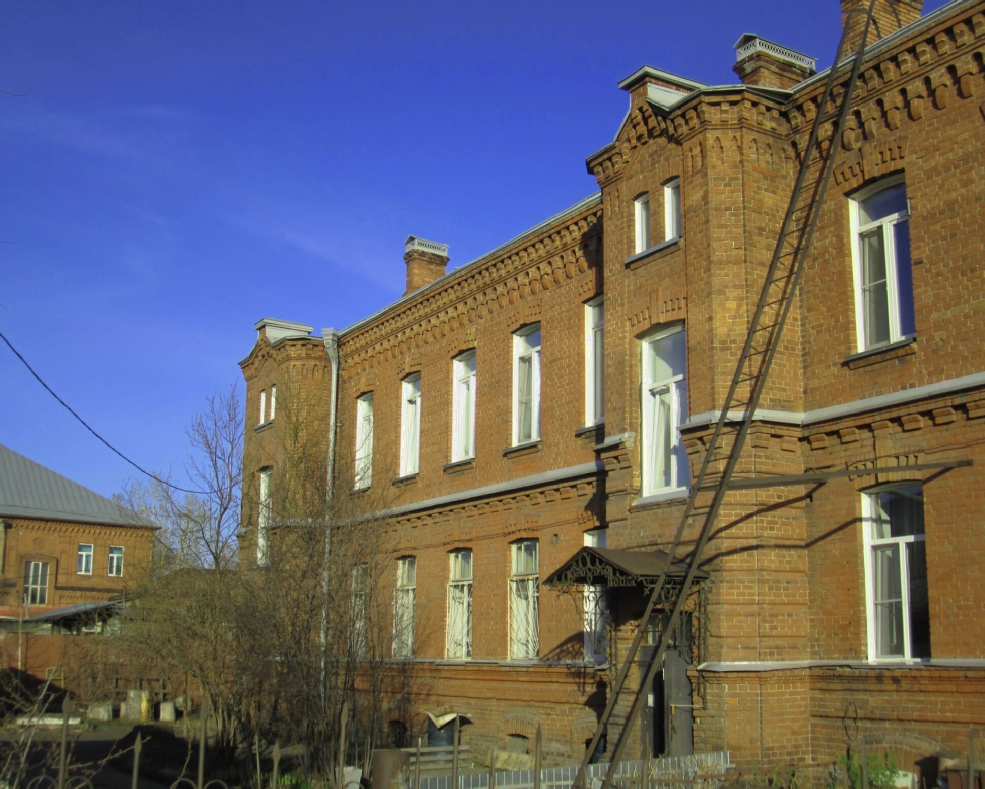 Архитектурный ансамбль дополняют сохранившиеся дымоходы на крыше, свидетельствующие об исторических особенностях отопления храма в зимний период. К одному из входов пристроена изящная металлическая лестница, ведущая к защитному козырьку над дверью.
