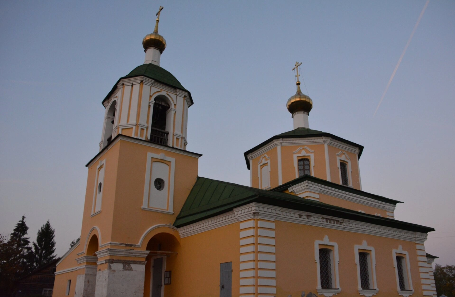 Каменный храм был возведён в период с 1779 по 1799 год на месте обветшавшей деревянной церкви. Строительство осуществлялось по инициативе и на средства помещицы Н. Г. Псищевой. Исторически храм имеет два престола: главный освящён в честь Казанской иконы Божией Матери, а второй — во имя святителя Николая Чудотворца. При храме также располагалось кладбище, что было характерно для приходских церквей того времени.