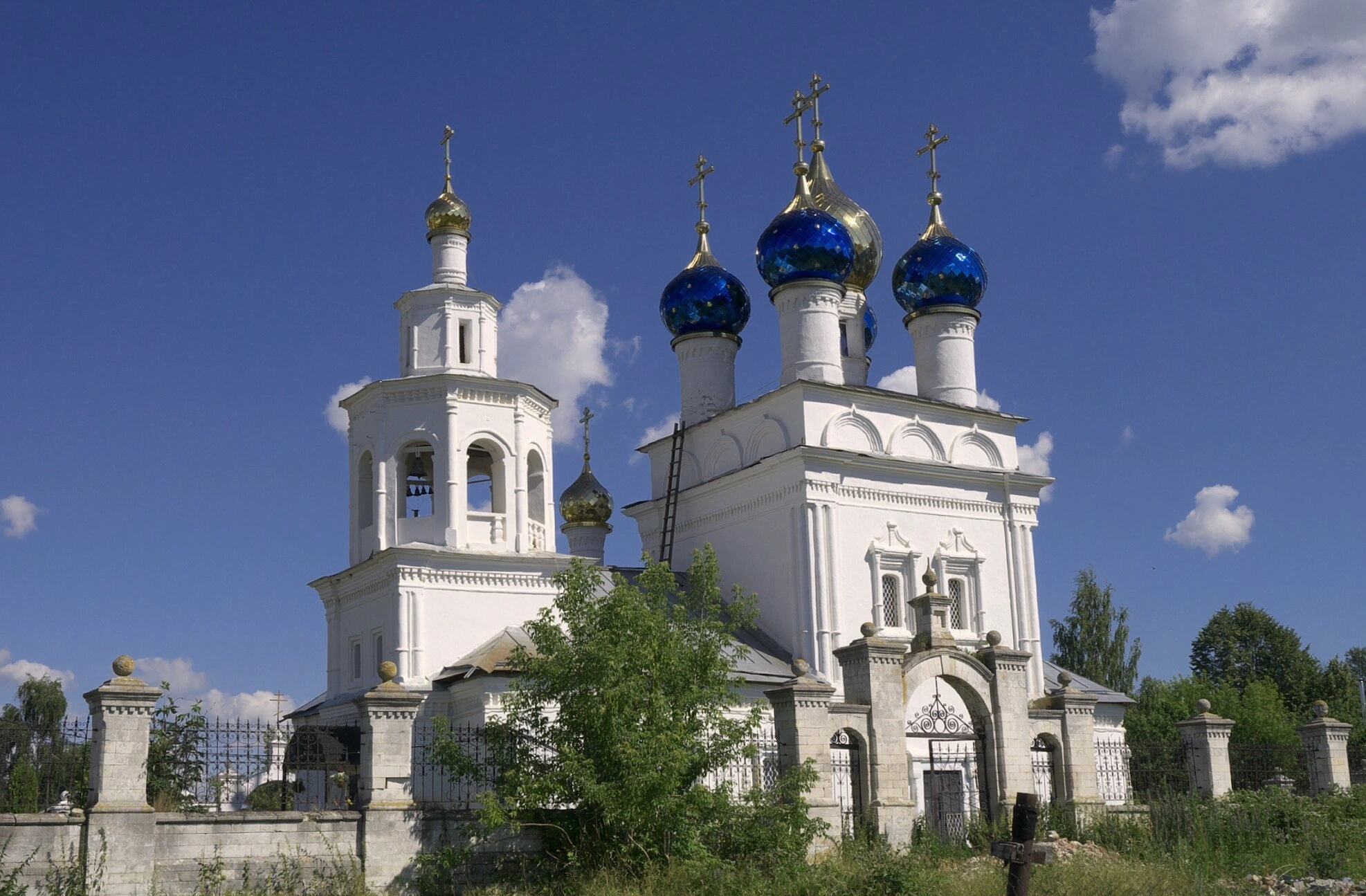 На представленной фотографии запечатлён храм в честь Казанской иконы Божией Матери, расположенный в селе Киясово Московской области. Эта православная святыня является значимым памятником церковной архитектуры и духовным центром для местных жителей и паломников.