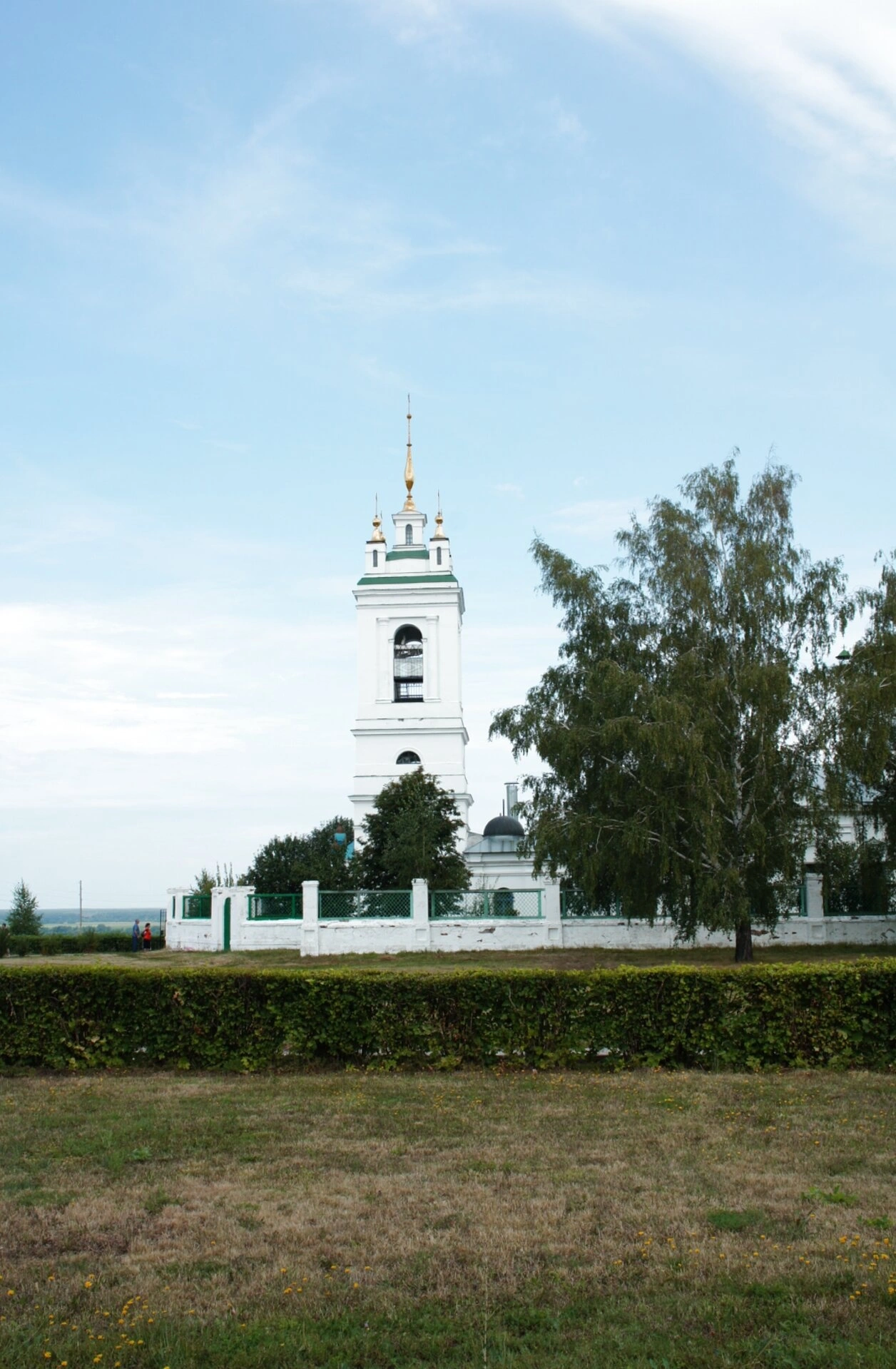 На фотографии запечатлена жемчужина рязанской земли — Церковь Казанской иконы Божией Матери, что возвышается на живописном берегу реки Оки в селе Константиново. Этот храм, являющийся неотъемлемой частью Государственного музея-заповедника С.А. Есенина, представляет собой выдающийся памятник церковной архитектуры второй половины XVIII века.