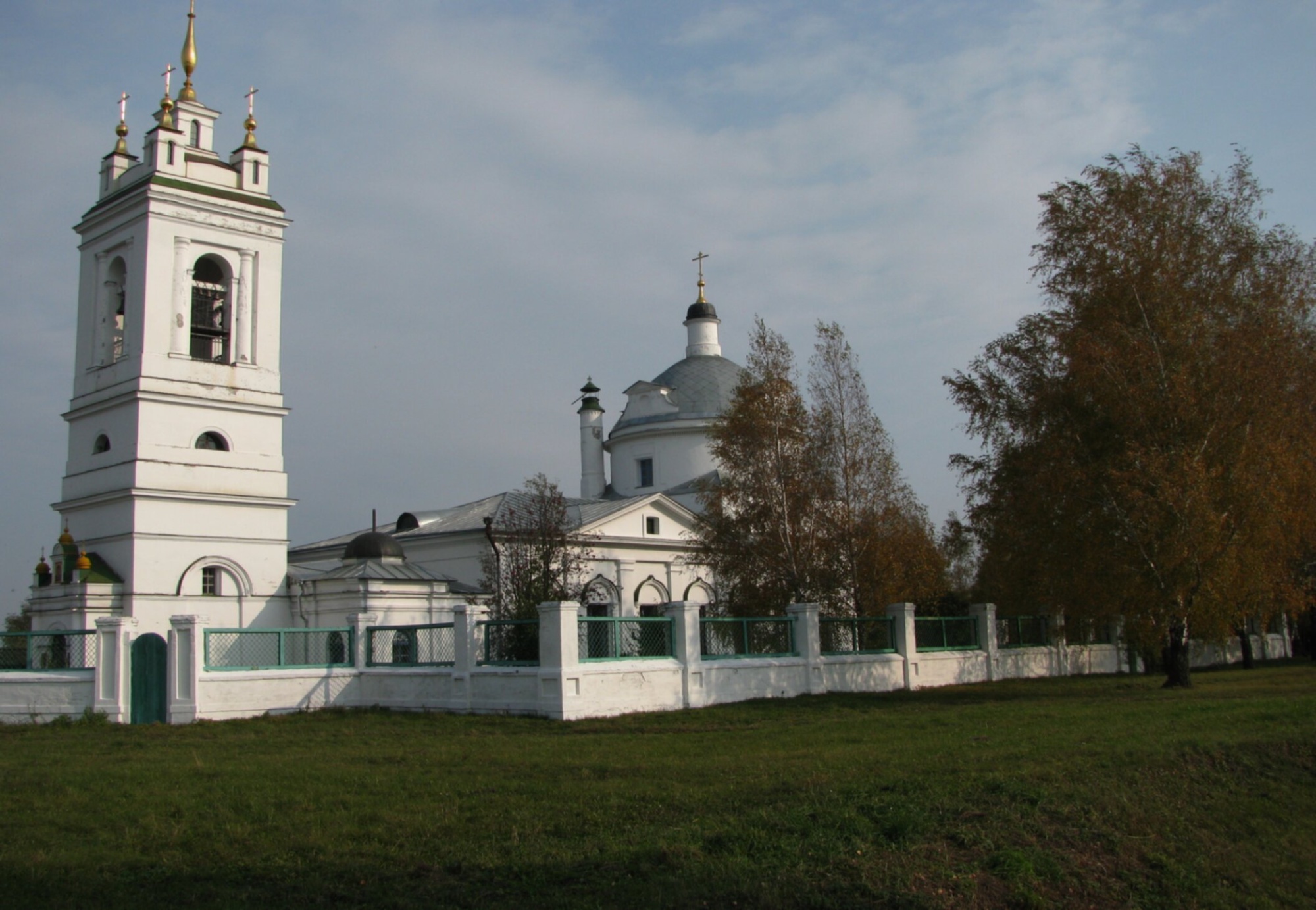 На представленной фотографии запечатлена Церковь Казанской иконы Божией Матери, что возвышается на живописном берегу реки Оки в селе Константиново Рязанской области. Этот каменный храм, являющийся архитектурной доминантой всего села, представляет собой прекрасный образец русской церковной архитектуры второй половины XVIII века.