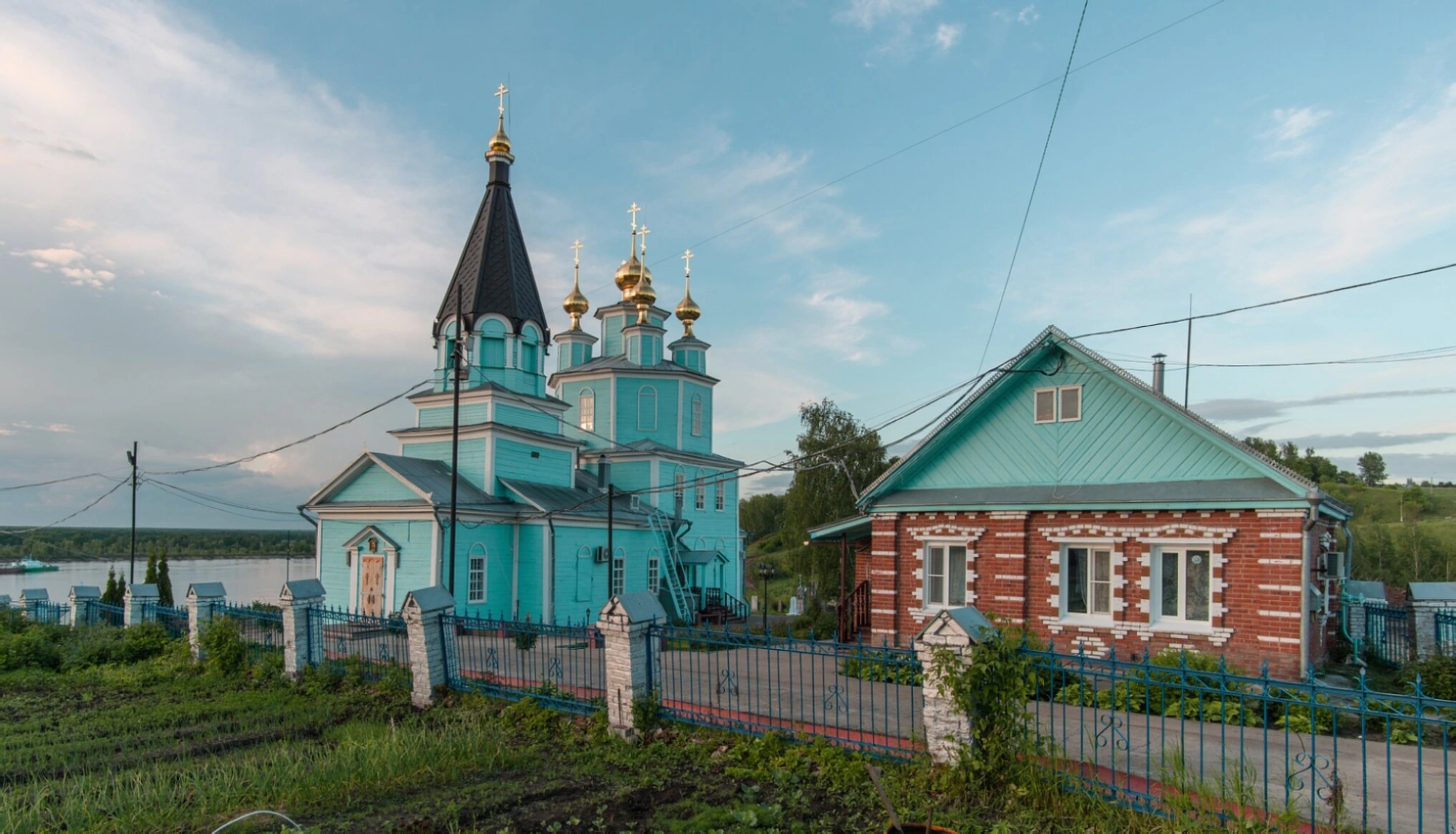 На представленной фотографии запечатлён храм в честь Казанской иконы Божией Матери, расположенный в старинном селе Великий Враг Кстовского района Нижегородской области. Святыня стоит на живописном берегу Волги, притягивая взор своим строгим и благолепным видом.