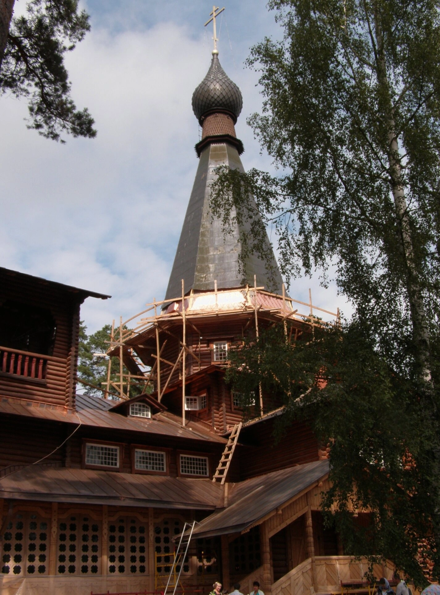 На представленной фотографии запечатлён величественный облик Храма Казанской иконы Божией Матери, расположенного в живописном посёлке Вырица Ленинградской области. Этот намоленный храм, освящённый в честь чудотворного образа Пресвятой Богородицы, является одной из главных духовных святынь всего Северо-Западного края и известным центром православного паломничества.