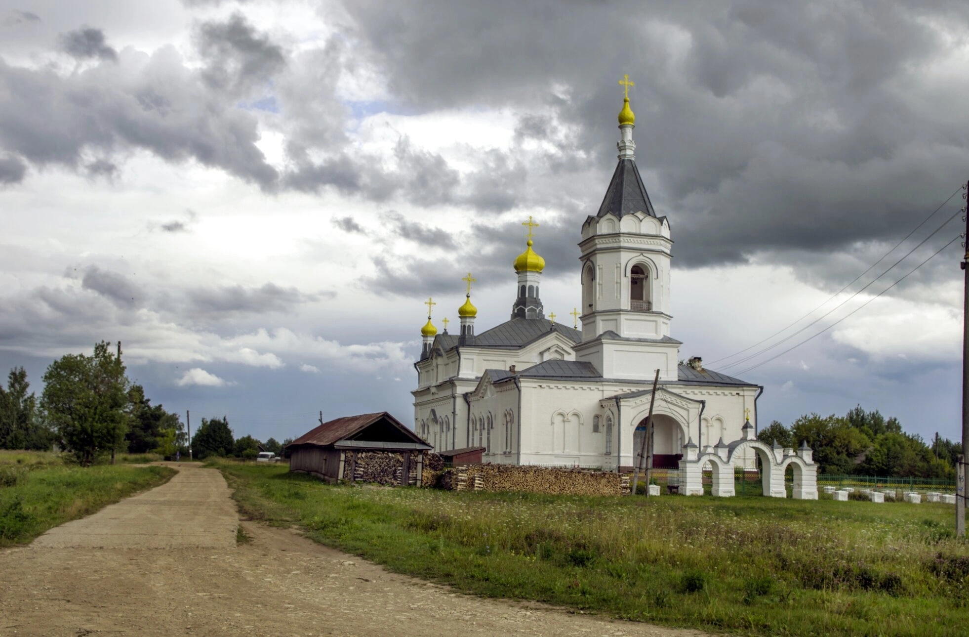 На представленной фотографии запечатлён храм в честь святого Архистратига Божия Михаила, расположенный в старинном селе Уртма Тоншаевского района Нижегородской области. Святыня, возвышающаяся на живописном пригорке, является духовным центром округи и памятником русского церковного зодчества.