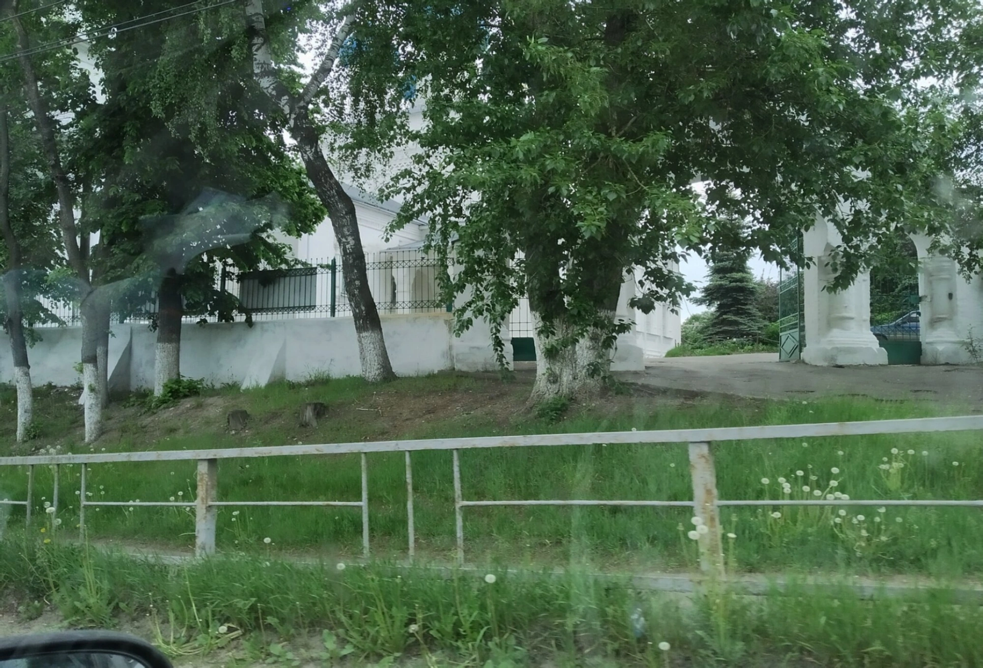 На представленной фотографии запечатлён живописный вид на один из старейших православных храмов Подмосковья — Церковь Святителя Николая Чудотворца в городе Пушкино. Снимок выполнен с дороги, проходящей рядом со святым местом, через узорчатую металлическую ограду, что придаёт кадру особый дух времени и ощущение сопричастности к истории.