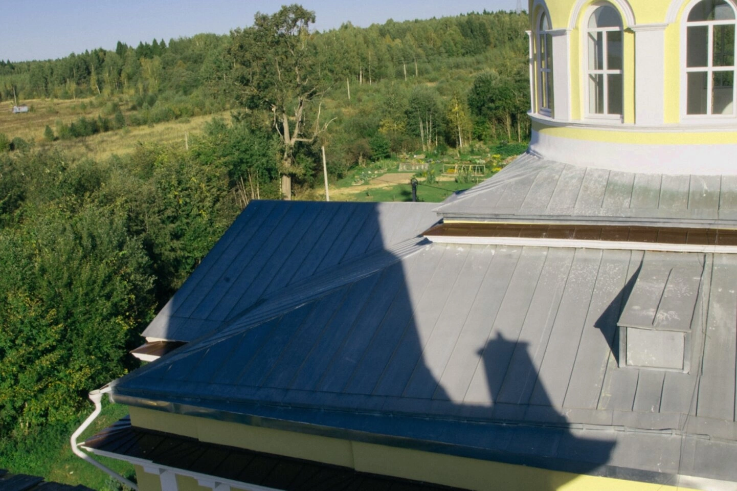 Снимок позволяет рассмотреть конструктивные особенности и традиции русского храмового зодчества, воплощённые в данном святом месте. Окружающий природный ландшафт с раскидистыми деревьями и полевыми просторами гармонично сочетается с рукотворной красотой православной святыни, создавая целостный и возвышенный образ.
