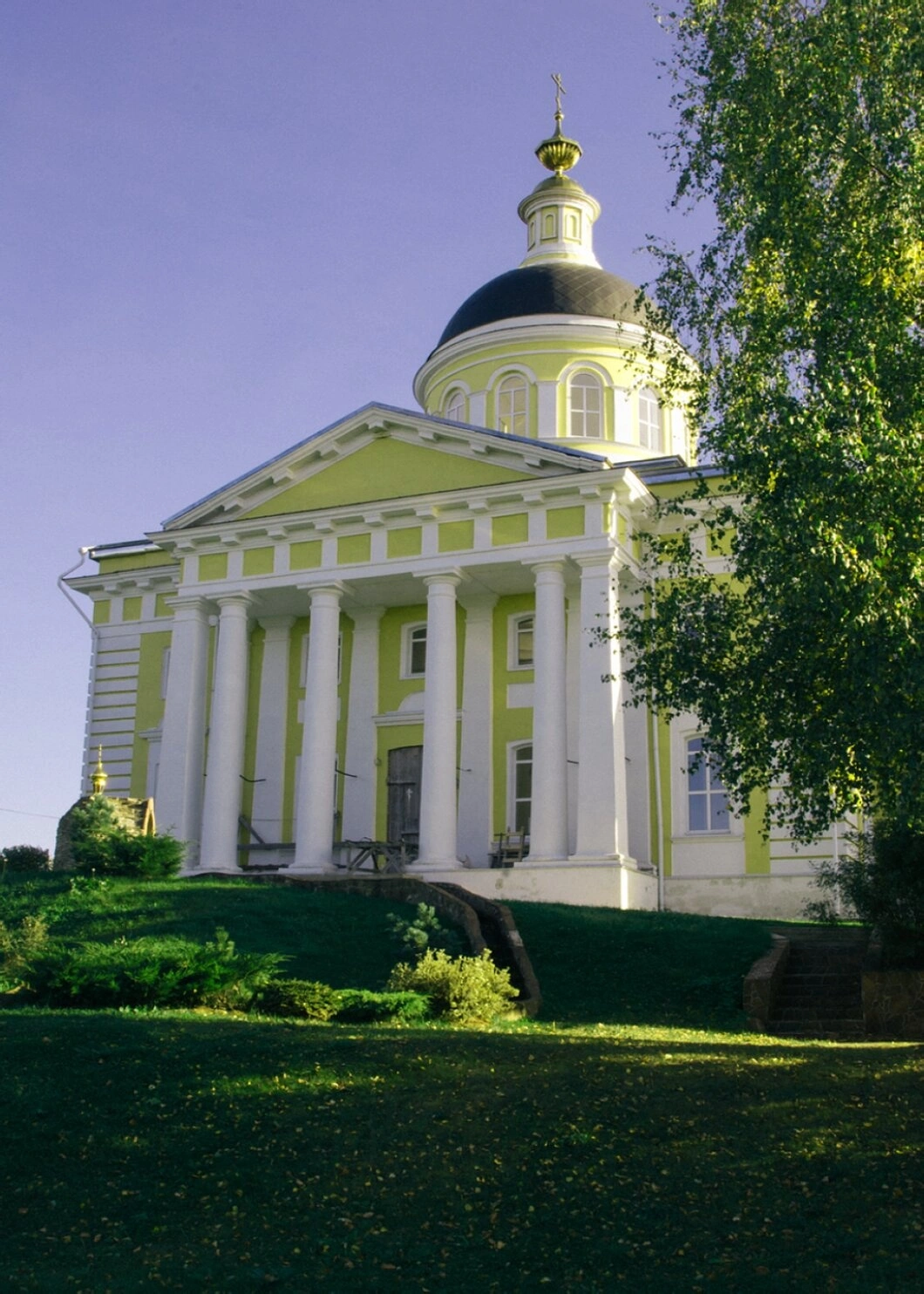 На представленной фотографии запечатлён храм во имя святителя Николая Чудотворца, расположенный в селе Белое Коломенского городского округа Московской области. Святыня, возведённая в конце XVIII столетия, является выдающимся образцом русской церковной архитектуры эпохи классицизма и объектом культурного наследия.