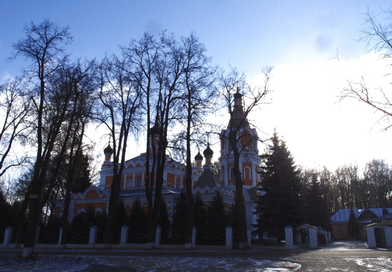 На представленной фотографии запечатлён величественный храм во имя святителя Николая Чудотворца, что расположен в древнем городе Солнечногорске. Святыня, возведённая в лучших традициях русского церковного зодчества, предстаёт перед зрителем в своём осенне-зимнем убранстве. Тёплые охристые стены и белоснежные декоративные элементы создают яркий и праздничный образ, символизируя свет истинной веры.