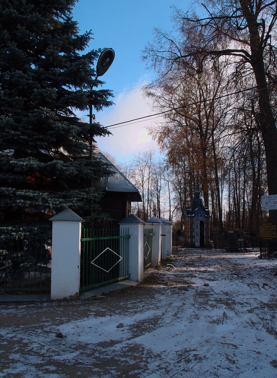 Часовня над могилой Глазунова А.И., расположенная на территории храмового комплекса, представляет собой отдельную архитектурную ценность. На снимке также можно различить уличный фонарь на ограде, который в вечернее время освещает путь верующим, направляющимся на богослужение.