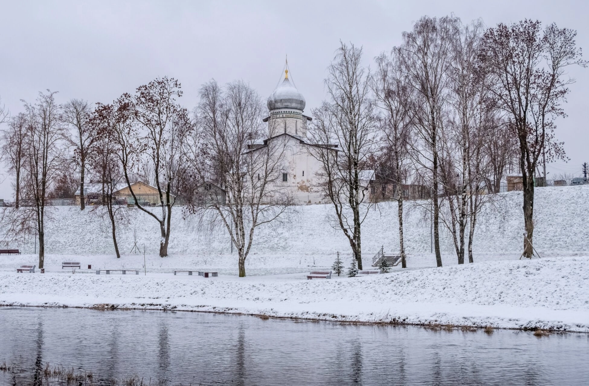Фото храма Петра и Павла с Буя в Пскове зимой