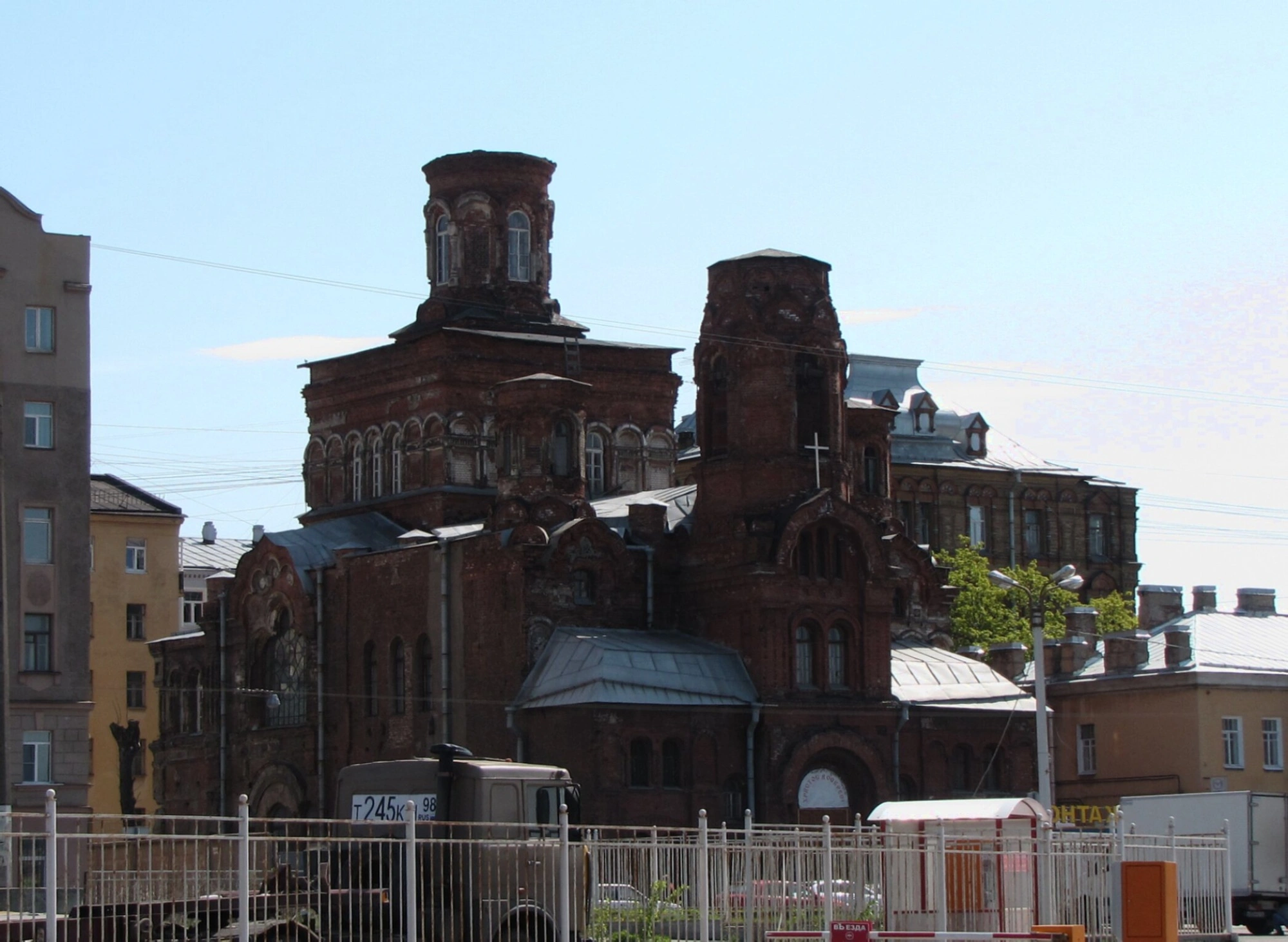 На представленной фотографии запечатлён Храм в честь Покрова Пресвятой Богородицы, что располагается на Боровой улице в Санкт-Петербурге. Это величественное кирпичное здание, являющееся выдающимся памятником церковной архитектуры конца XIX века.