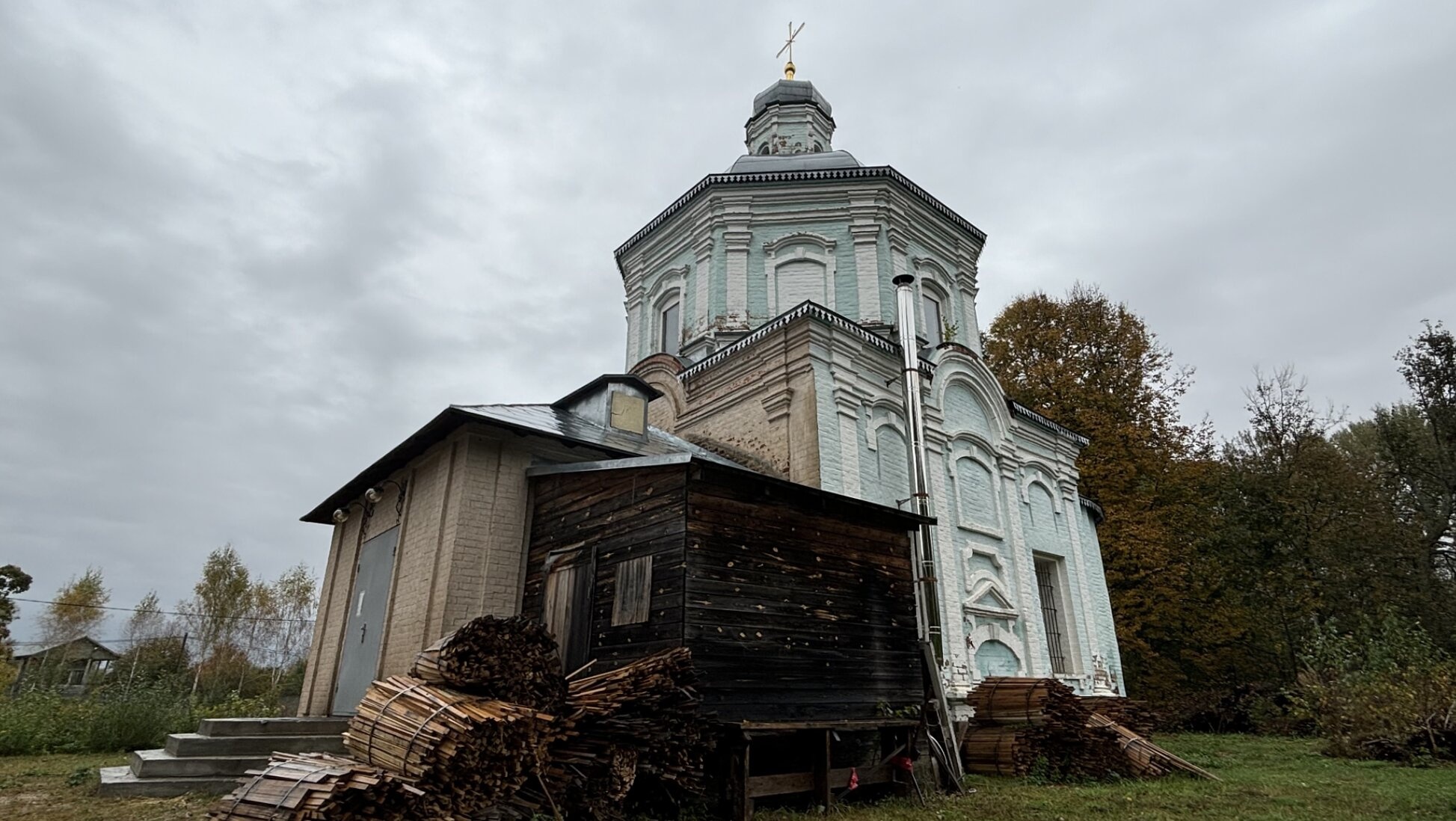 На переднем плане видны аккуратно сложенные штабели дров, что указывает на активную приходскую жизнь и подготовку к зимнему периоду. Церковь Покрова Пресвятой Богородицы в Кучках является объектом культурного наследия и известна с XVII века. Нынешнее каменное здание было возведено в 1823 году на средства прихожан. Храм был возвращён Русской Православной Церкви и вновь освящён после реставрационных работ. В настоящее время в нём регулярно совершаются богослужения, таинства и требы. Покровский храм является центром духовной жизни для местных жителей и паломников, приезжающих помолиться в его стенах.