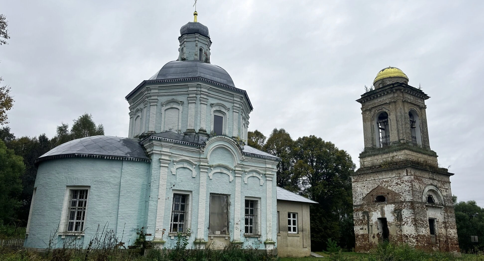 Отдельного внимания на изображении заслуживает колокольня, стоящая несколько поодаль. Ныне пребывающая в полуразрушенном состоянии, она хранит память о былых временах, когда её звон собирал прихожан на богослужение и разносился над окрестными полями и деревнями. Её ярусы, некогда украшенные арочными проёмами, сегодня молчаливо свидетельствуют о необходимости возрождения этой святыни.