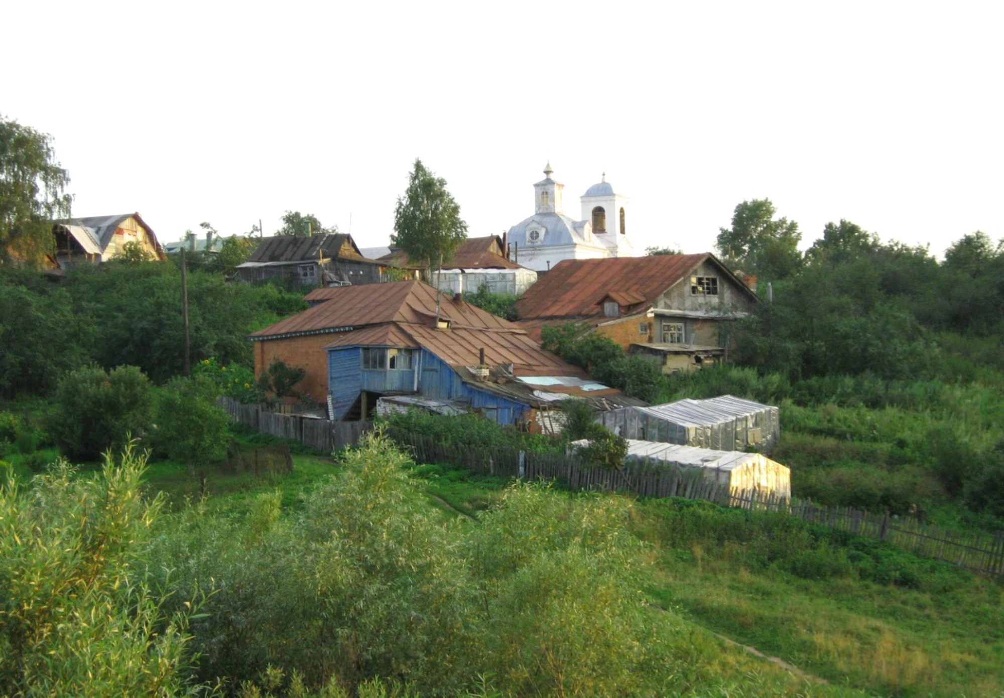 Обильная растительность, покрывающая склоны, подчёркивает красоту среднерусской природы и создаёт обрамление для главной доминанты — православной церкви. Храм с тёмными куполами, увенчанными крестами, является архитектурным и духовным акцентом, видимым из любой точки деревни. Его светлые стены символизируют чистоту и надежду, а традиционные формы напоминают о непрерывности православных традиций на нижегородской земле.