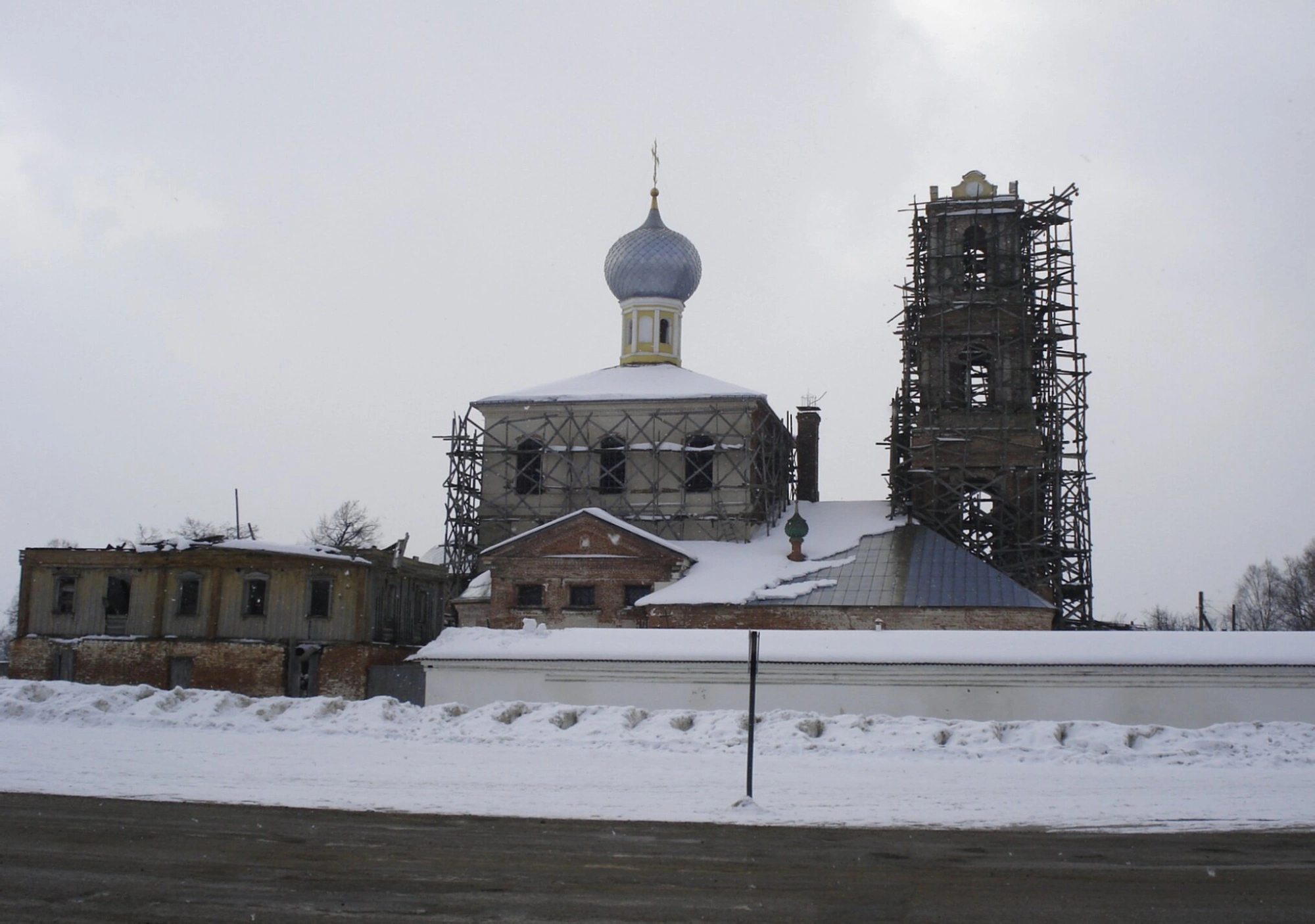 Храм представляет собой выдающийся образец русской церковной архитектуры рубежа XVII–XVIII столетий. Пятиглавый четверик, увенчанный традиционными луковичными главами с крестами, и стройная шатровая колокольня создают гармоничный и величественный силуэт, доминирующий над заснеженным сельским пейзажем. Белоснежный покров скрывает землю, подчёркивая монументальность и духовную твердыню православной святыни.