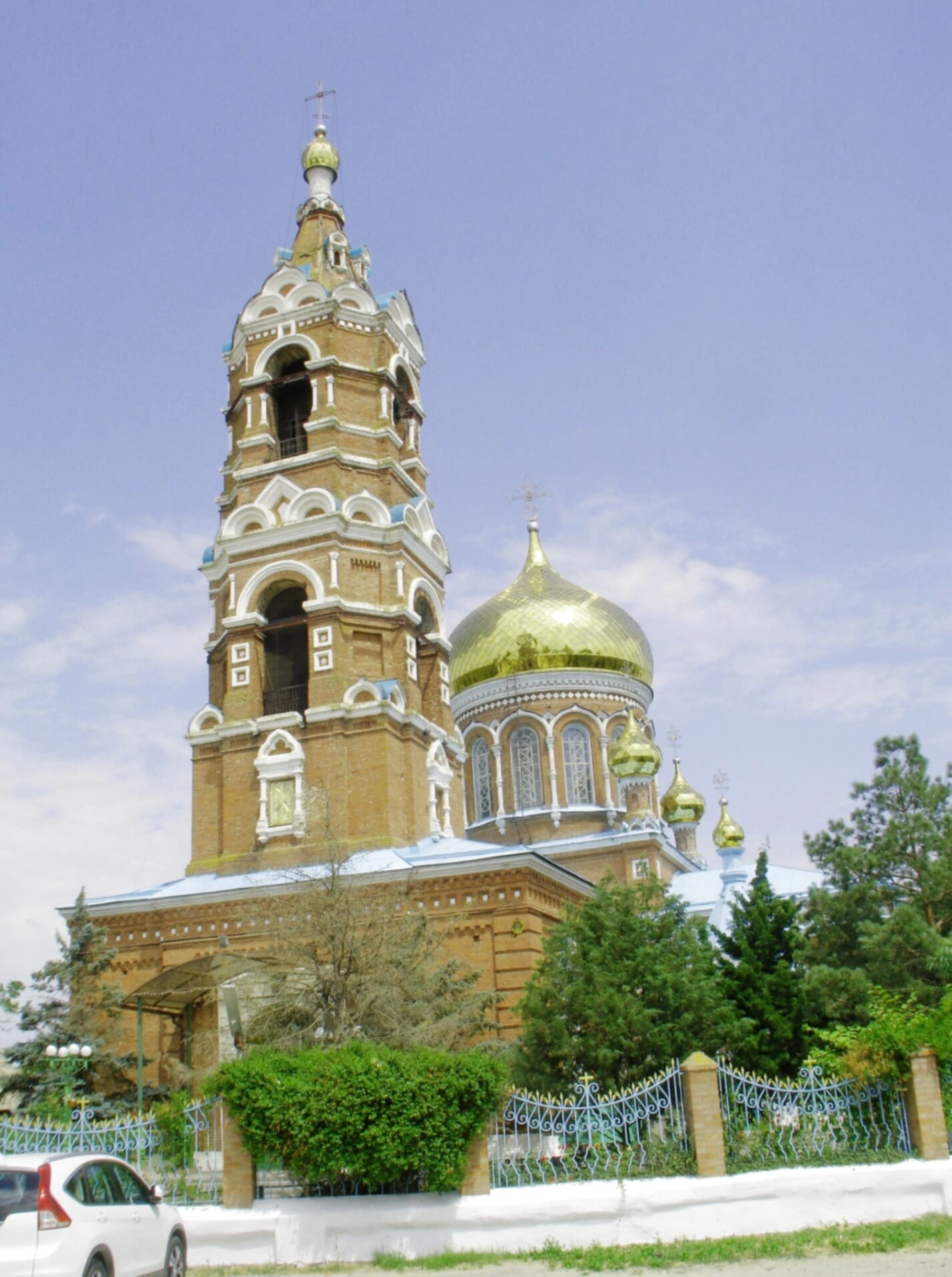 На представленной фотографии запечатлён величественный облик Церкви Преображения Господня, расположенной в селе Обуховка Азовского района Ростовской области. Храм является значимым духовным центром для православных верующих данного региона.