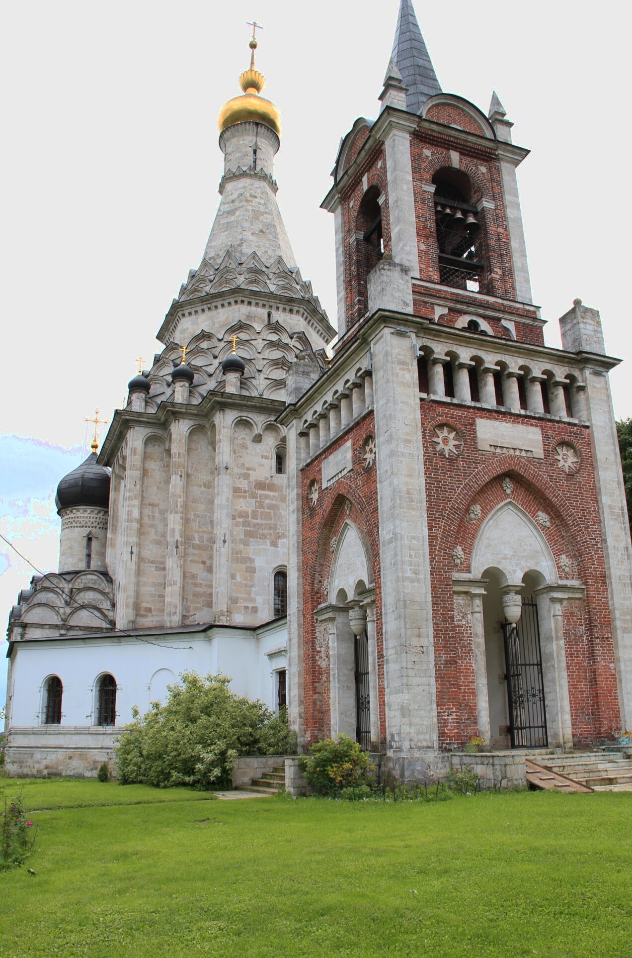 На представленной фотографии запечатлён выдающийся памятник русской церковной архитектуры — храм Преображения Господня, расположенный в селе Остров Ленинского района Московской области. Этот величественный шатровый храм, возведённый в конце XVI века, является одной из старейших каменных построек Подмосковья и объектом культурного наследия федерального значения.