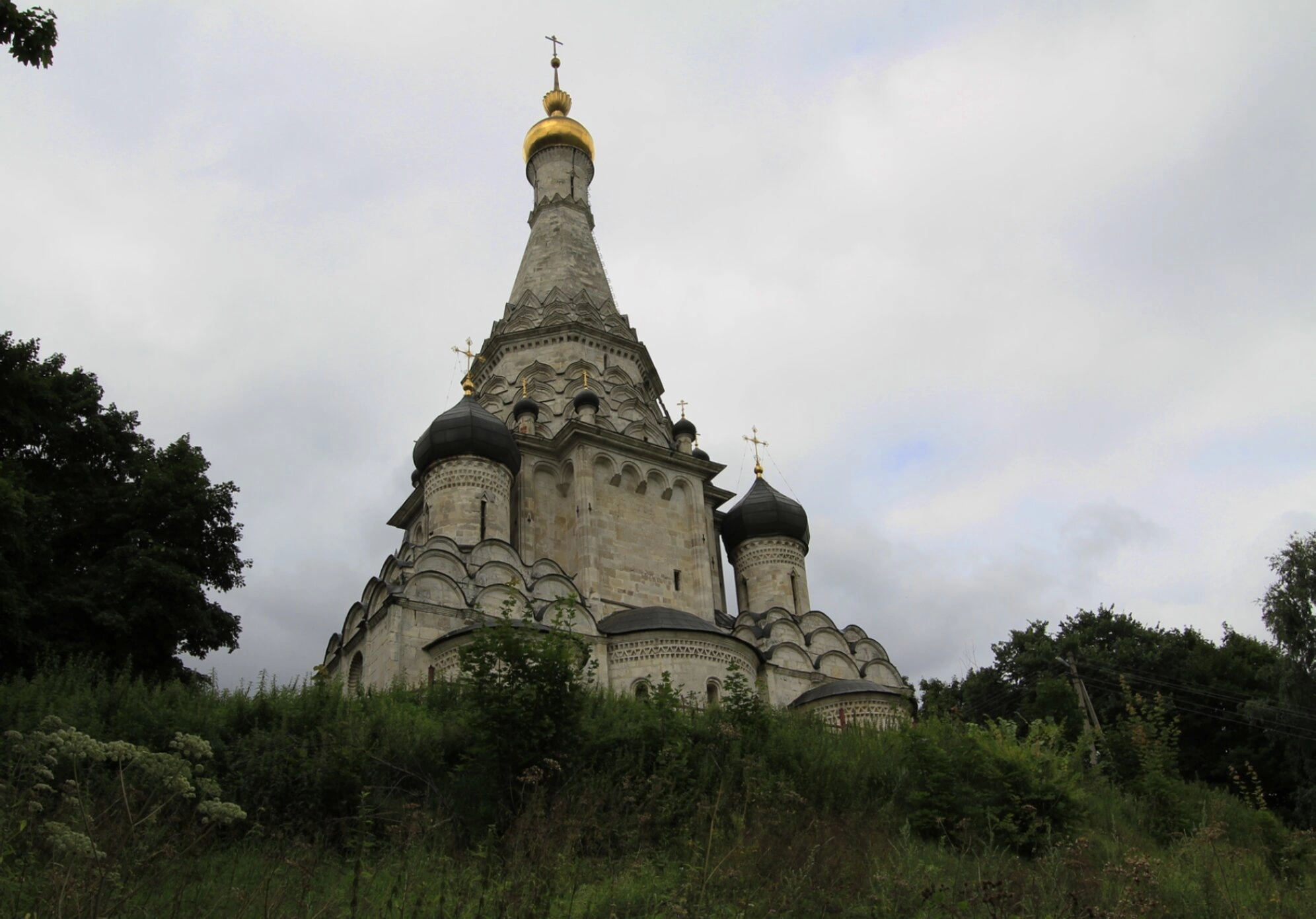 На представленной фотографии запечатлён выдающийся памятник русского церковного зодчества — храм Преображения Господня, что расположен в древнем селе Остров Ленинского городского округа Московской области. Этот величественный белокаменный храм, освящённый в честь одного из двунадесятых праздников — Преображения Господня, является одним из немногих уцелевших образцов шатровой архитектуры XVI столетия и находится под охраной государства как объект культурного наследия федерального значения.