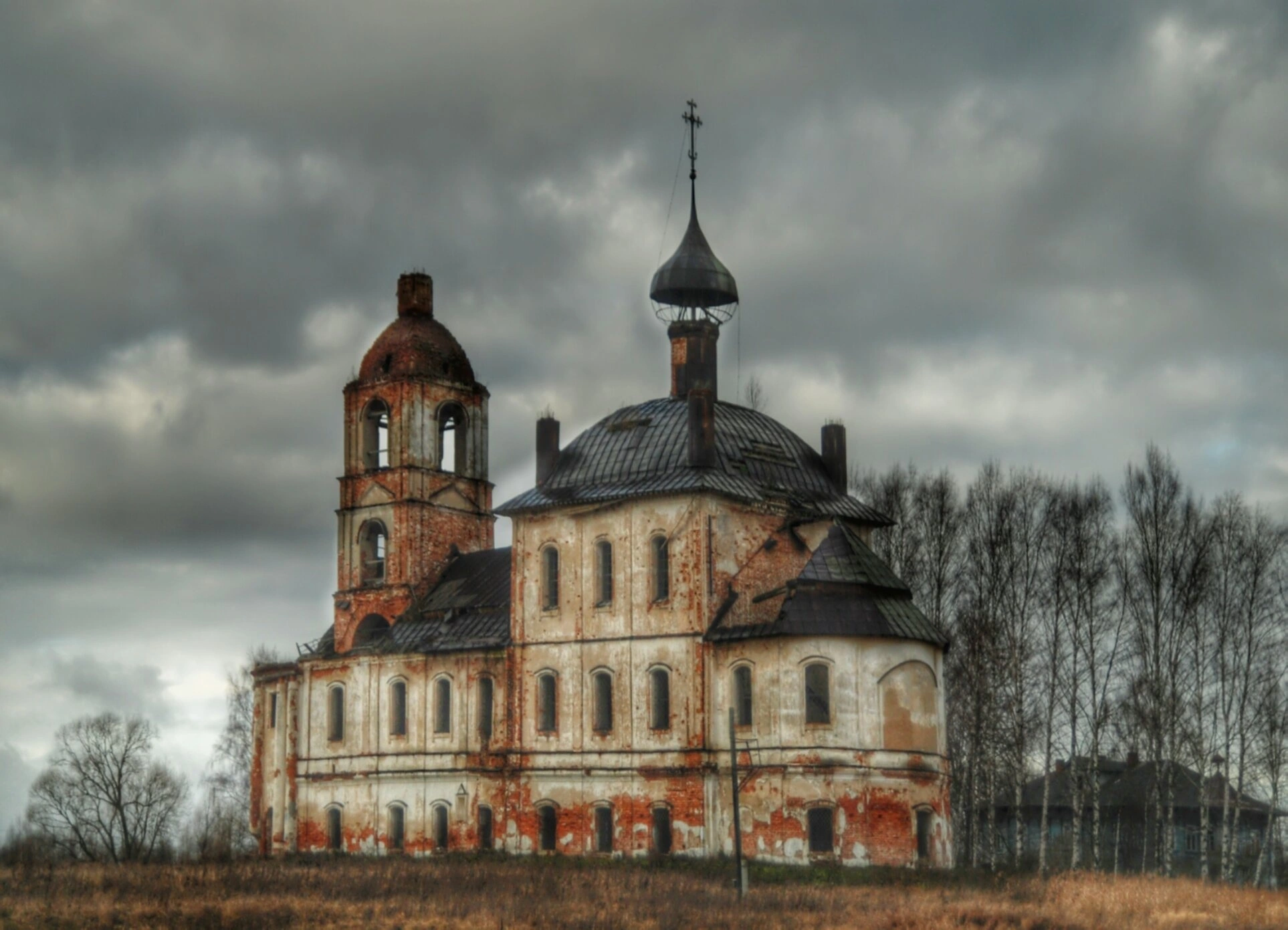На фотографии запечатлена Церковь Преображения Господня, расположенная в селе Поводнево Мышкинского района Ярославской области. Этот уникальный храмовый комплекс, возведённый на рубеже XVIII–XIX веков, является выдающимся памятником церковной архитектуры и истории.