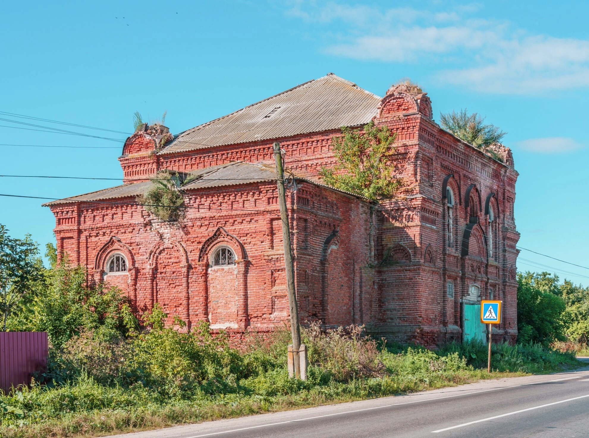 Храмовая постройка выполнена из красного кирпича с сохранением элементов традиционного православного зодчества. Фасад здания украшают арочные оконные проемы, часть которых заложена или повреждена. В архитектурном декоре прослеживаются элементы кирпичной кладки, характерные для церковного строительства конца XIX - начала XX веков.