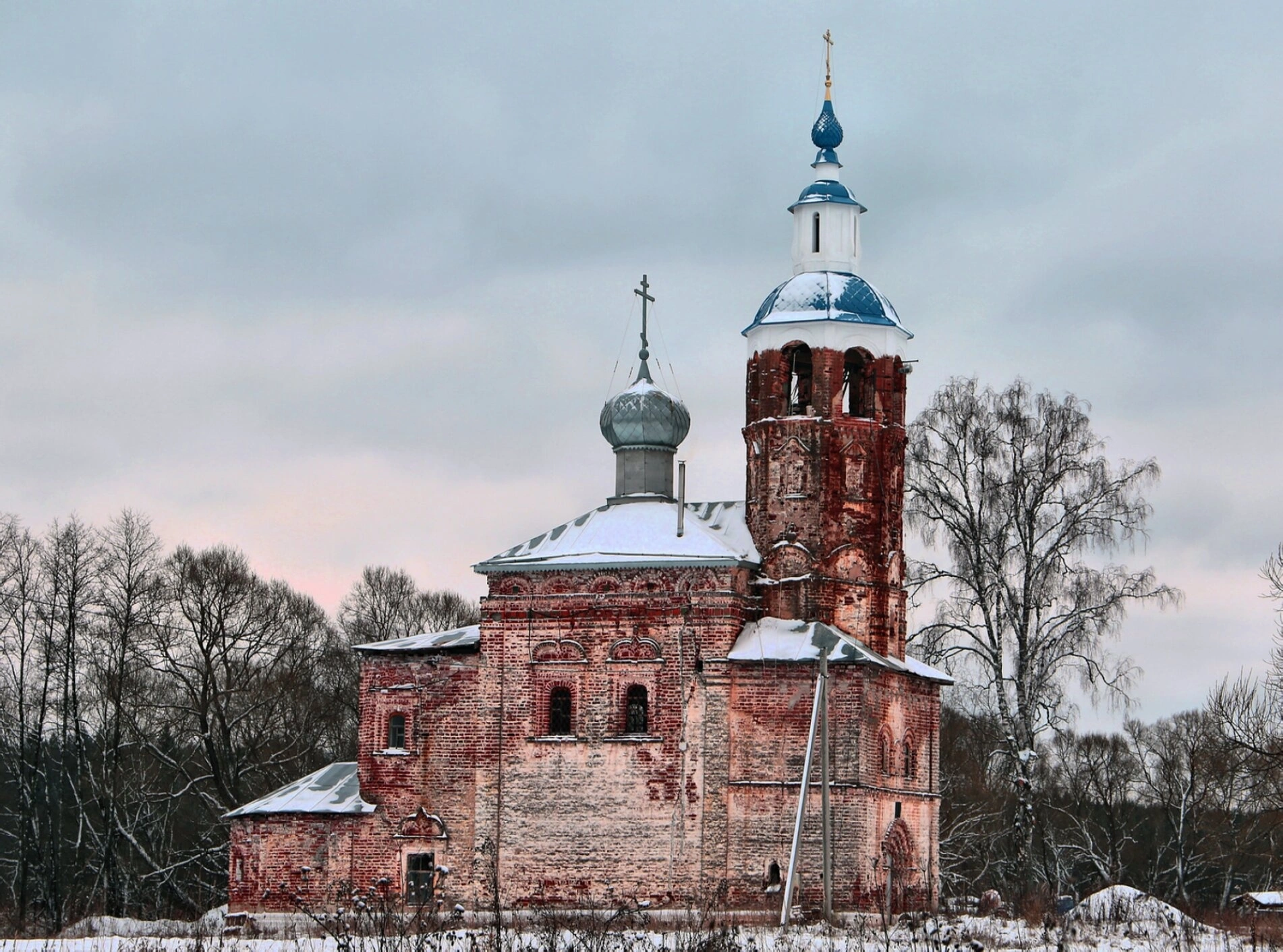 Состояние кирпичной кладки свидетельствует о почтенном возрасте святого места, что придаёт ему особую атмосферу благоговейной старины. Храм окружён спящими под снегом деревьями, а чистый снег покрывает землю и кровли, создавая ощущение чистоты, покоя и тихой молитвенной радости, свойственной православным зимним праздникам.