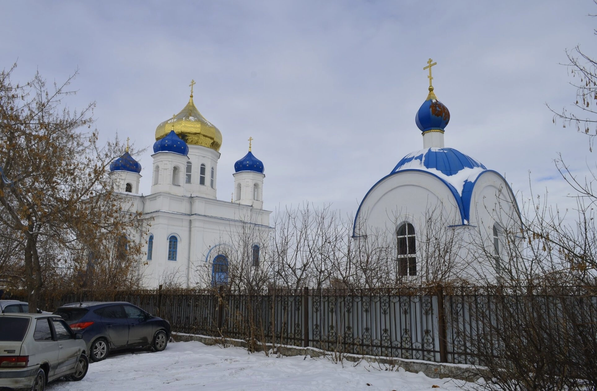 На фотографии запечатлён храм Преображения Господня, входящий в комплекс Свято-Казанского женского монастыря в городе Троицке Челябинской области. Снежное убранство окутывает святую обитель, преображая её вид и наполняя пространство благодатной тишиной и умиротворением.