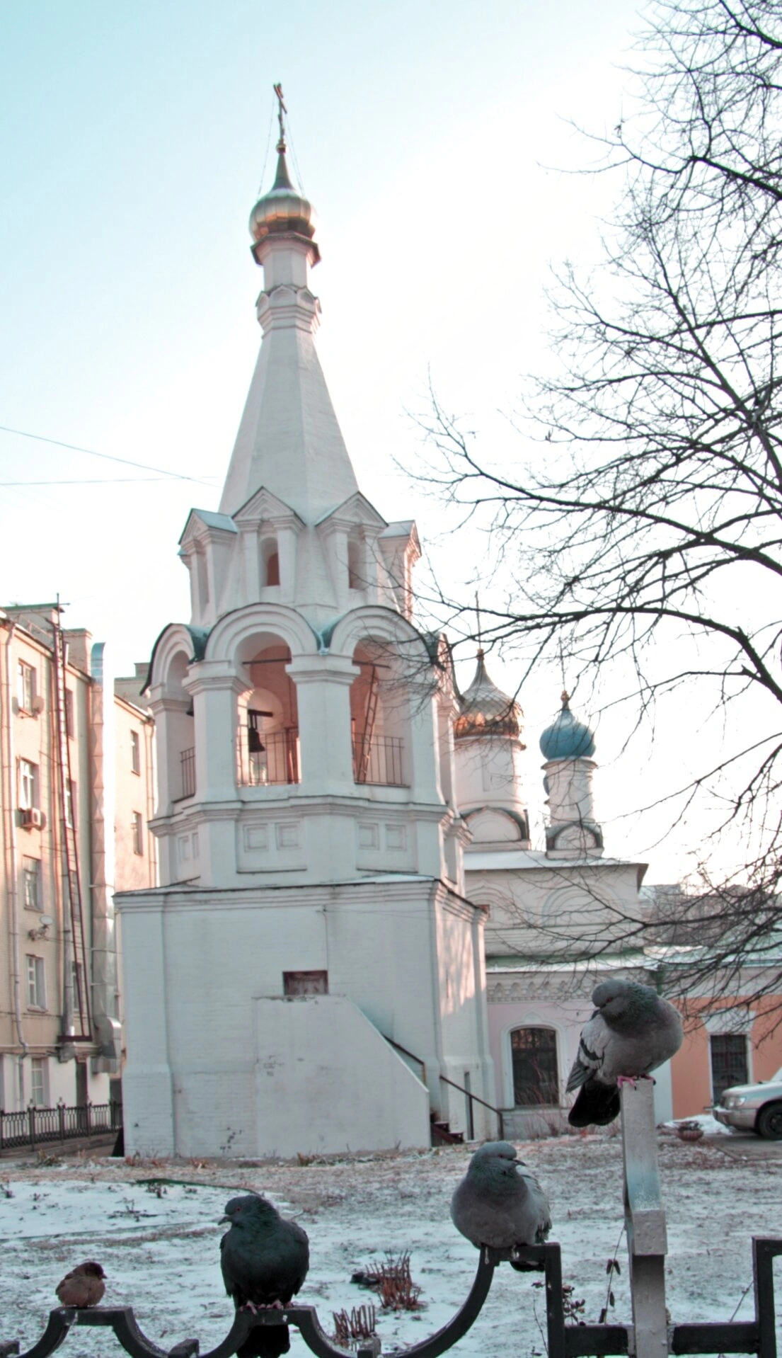 На представленной фотографии запечатлён храм преподобного Феодора Студита, что у Никитских ворот в Москве. Этот старинный православный храм, освящённый в честь византийского монаха-подвижника и церковного деятеля Феодора Студита, является одной из значимых духовных достопримечательностей столицы.