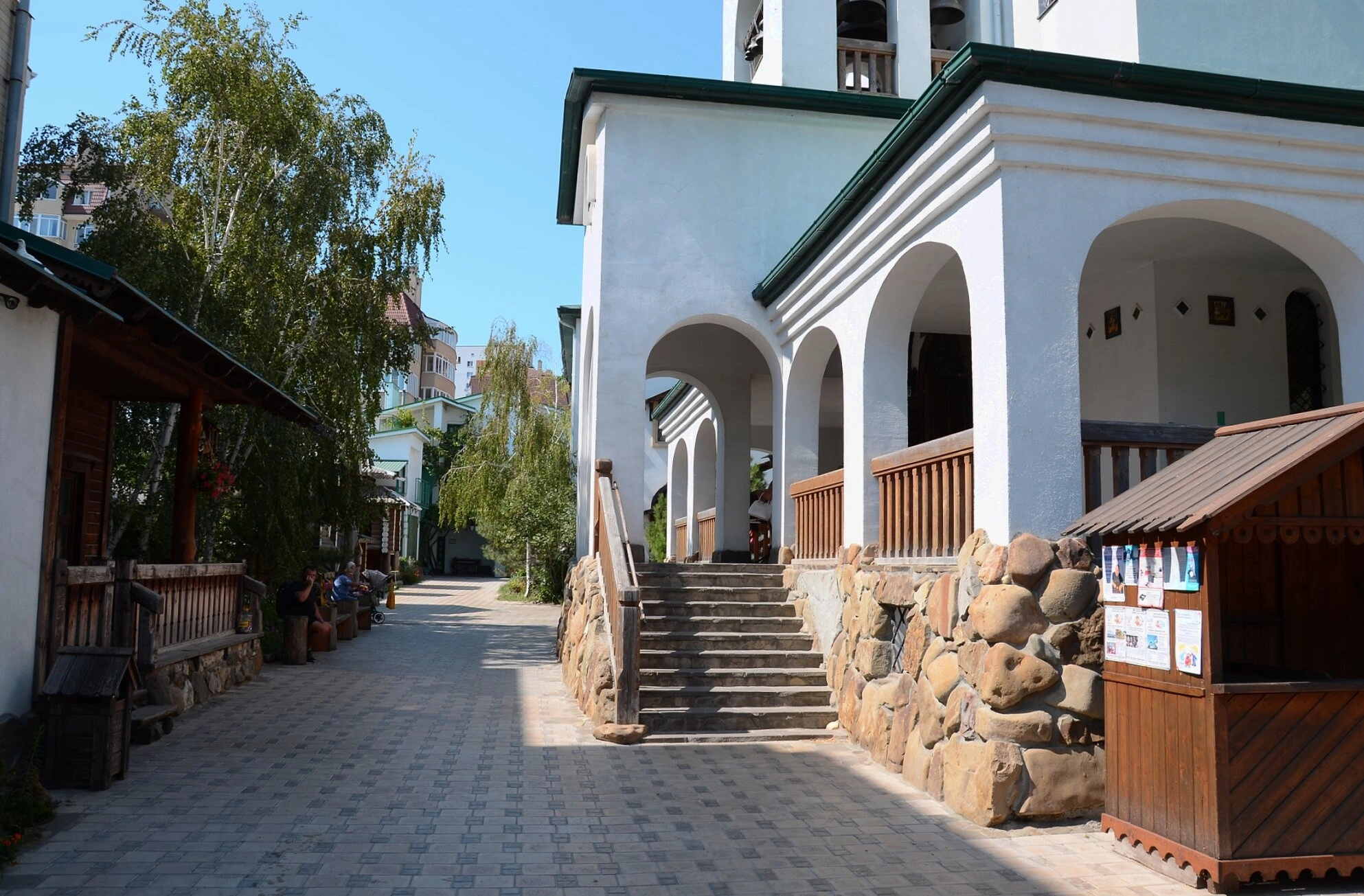 Храм преподобного Серафима Саровского является значимым духовным центром Анапы, где верующие могут вознести молитвы великому саровскому чудотворцу, известному своим подвижничеством и пророческими наставлениями. На заднем плане фотографии просматриваются современные жилые здания, что символически подчеркивает неразрывную связь православных традиций с современной жизнью города.