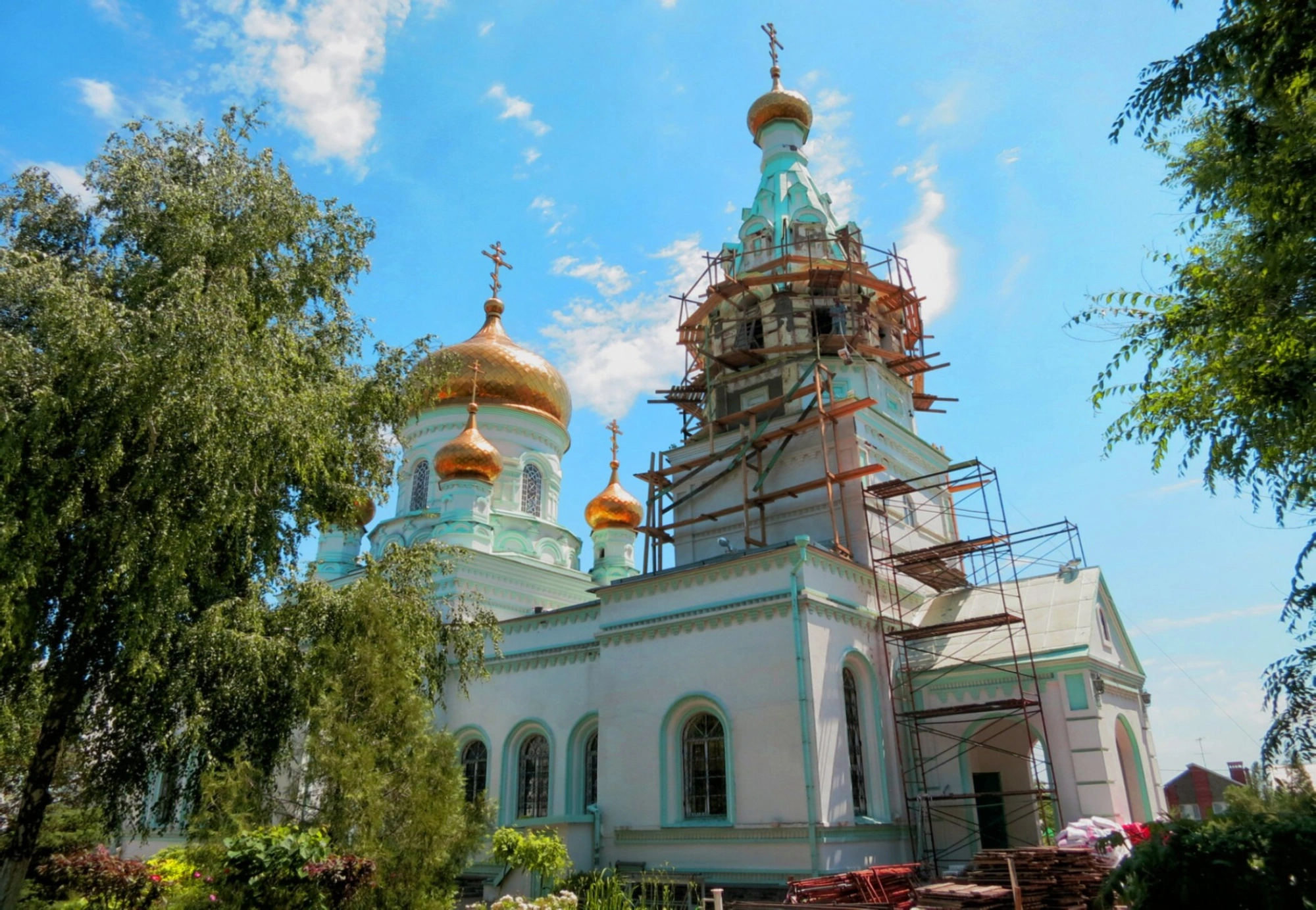 Особое внимание на снимке привлекает колокольня, окружённая строительными лесами. Это свидетельствует о непрекращающихся трудах по возрождению и благоукрашению святыни. История храма, основанного на добровольные пожертвования жителей станицы Гниловской и освящённого в 1911 году, была полна испытаний. После периода закрытий и разорения в годы гонений, храм был возвращён верующим и заново освящён в 2004 году. Нынешние восстановительные работы на колокольне являются продолжением этого пути возрождения, совершаемого силами прихожан и благотворителей.