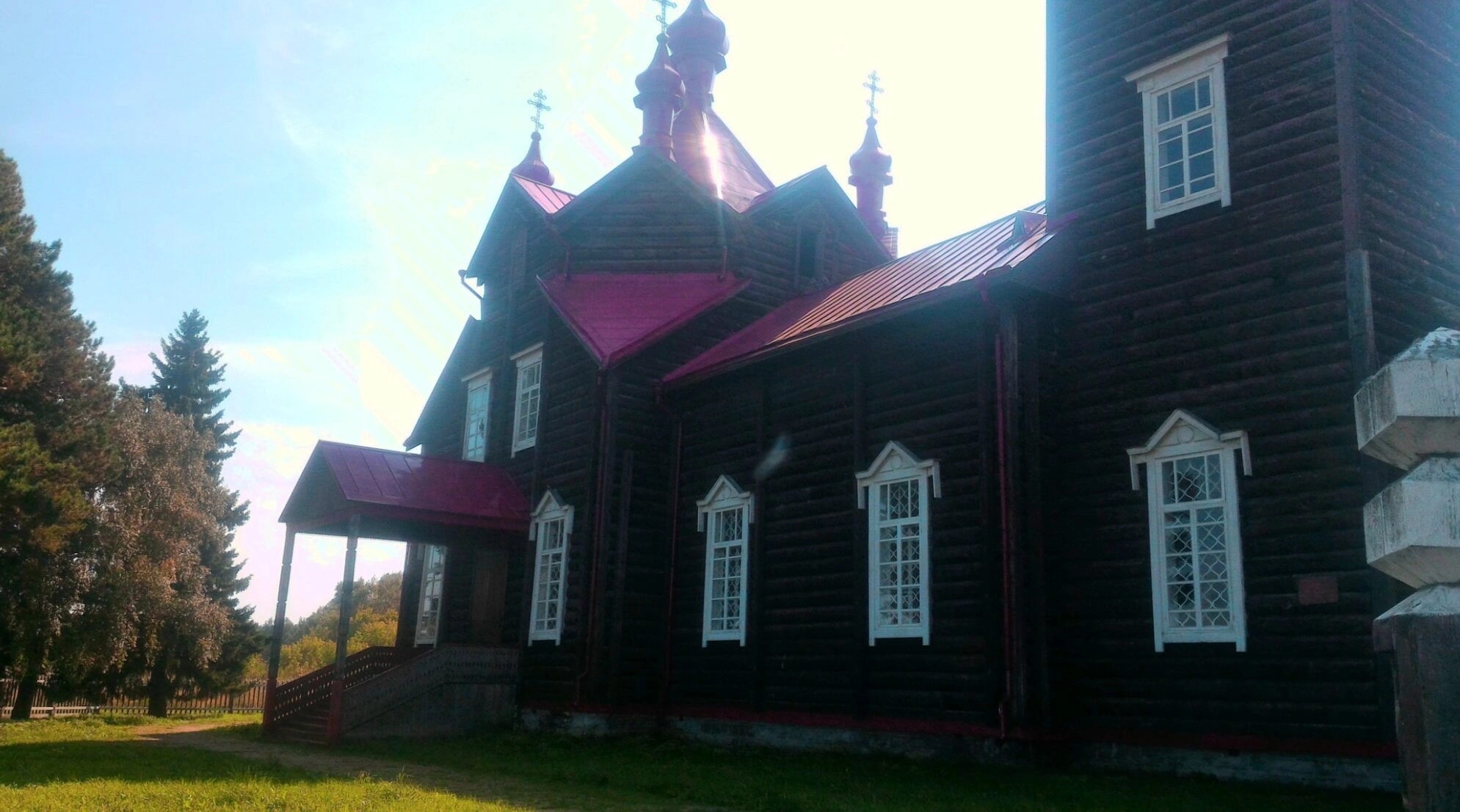 Храм гармонично вписан в природный ландшафт Сибири. Перед его входом простирается ухоженная зелёная лужайка, а на заднем плане виднеется густой хвойный и лиственный лес, обрамляющий святыню и создающий ощущение уединённости и молитвенного покоя.