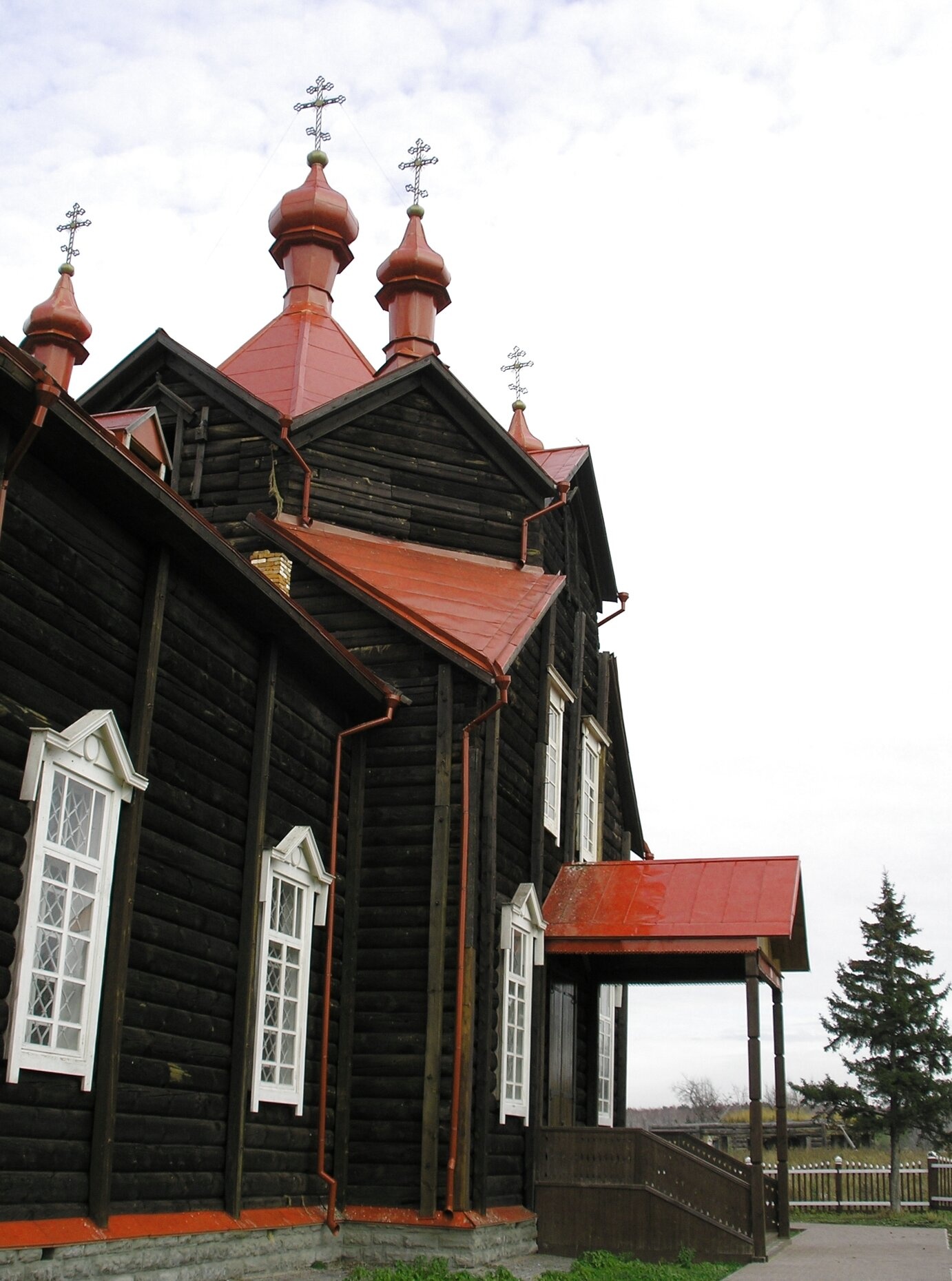 На представленной фотографии запечатлена деревянная церковь во имя преподобного Серафима Саровского, расположенная в селе Турнаево Болотнинского района Новосибирской области. Храм является выдающимся образцом сибирского деревянного зодчества начала XX века и объектом культурного наследия.