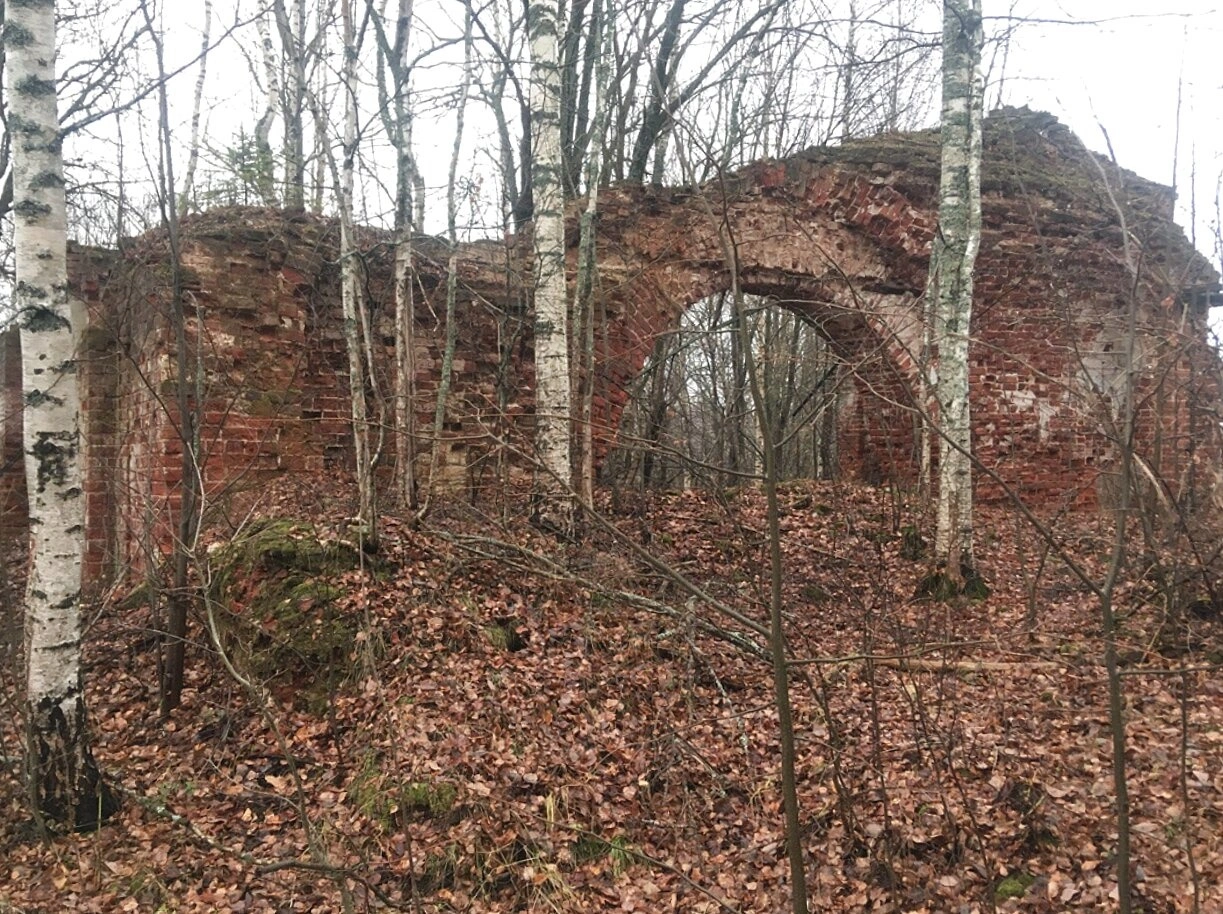 На фотографии запечатлены фрагменты кирпичной кладки храма Преподобного Сергия Радонежского, расположенного в деревне Филиппово Кимрского района Тверской области. Эти стены являются молчаливыми свидетелями истории православной святыни, некогда бывшей духовным центром для местных жителей.