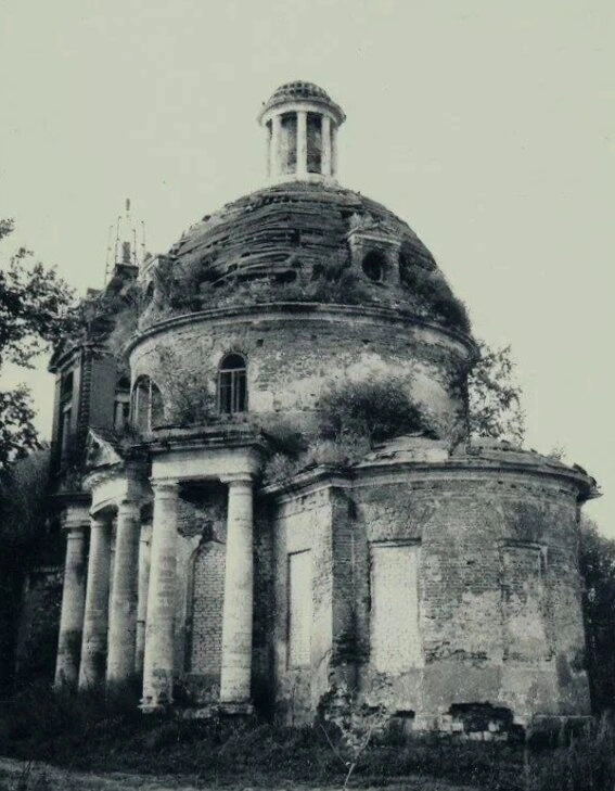 На представленной фотографии запечатлён храм во имя Преподобного Сергия Радонежского, расположенный в селе Трубино Щёлковского района Московской области. Святыня, возведённая в 1857 году на средства благотворителей, ныне пребывает в скорбном состоянии разрушения и забвения.