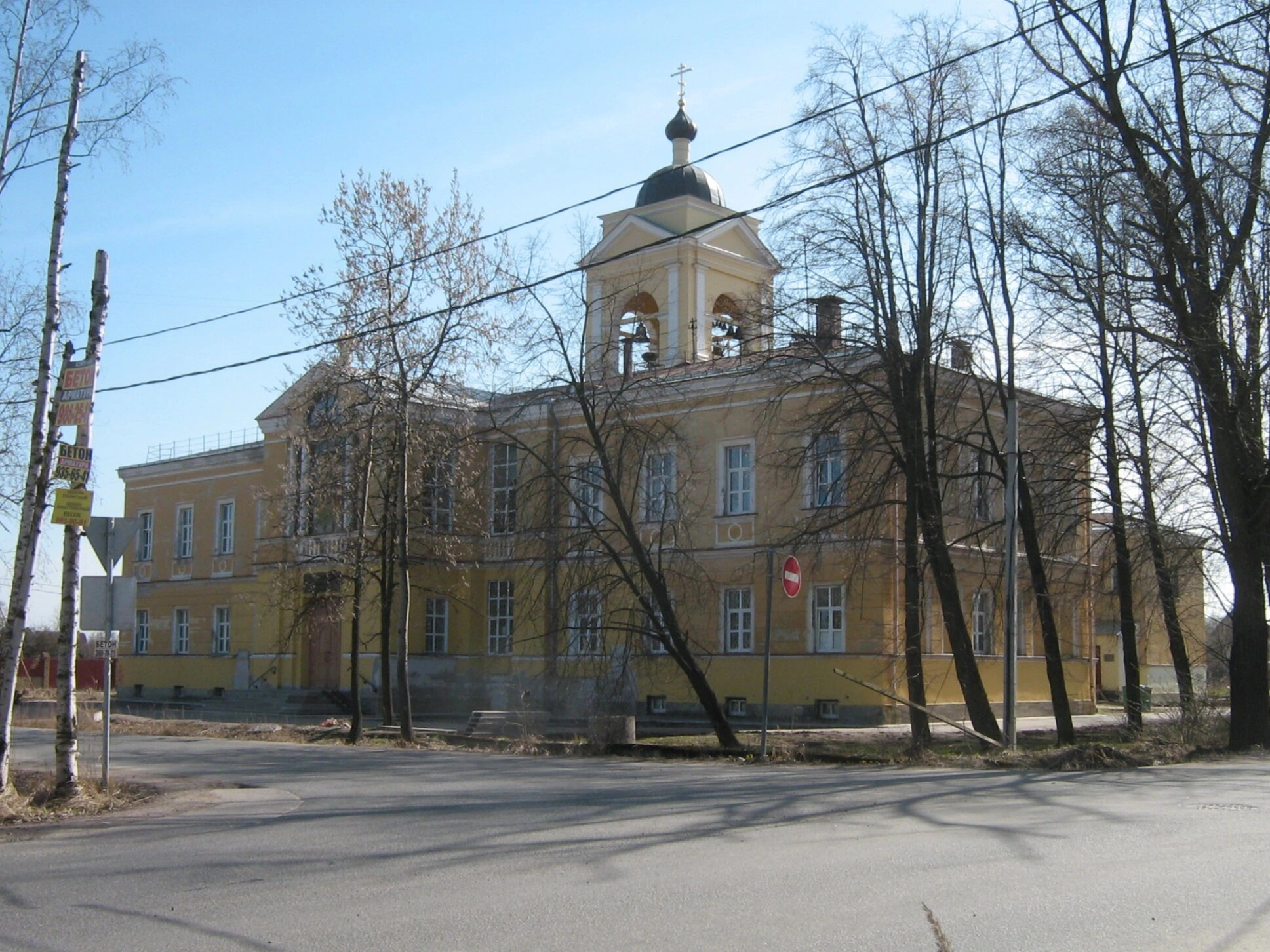 На представленной фотографии запечатлён храм в честь Святого Преподобномученика Андрея Критского, расположенный в посёлке Сергиево Ленинградской области. Исторически это место известно как Володарский, что нашло отражение в прежнем названии обители.