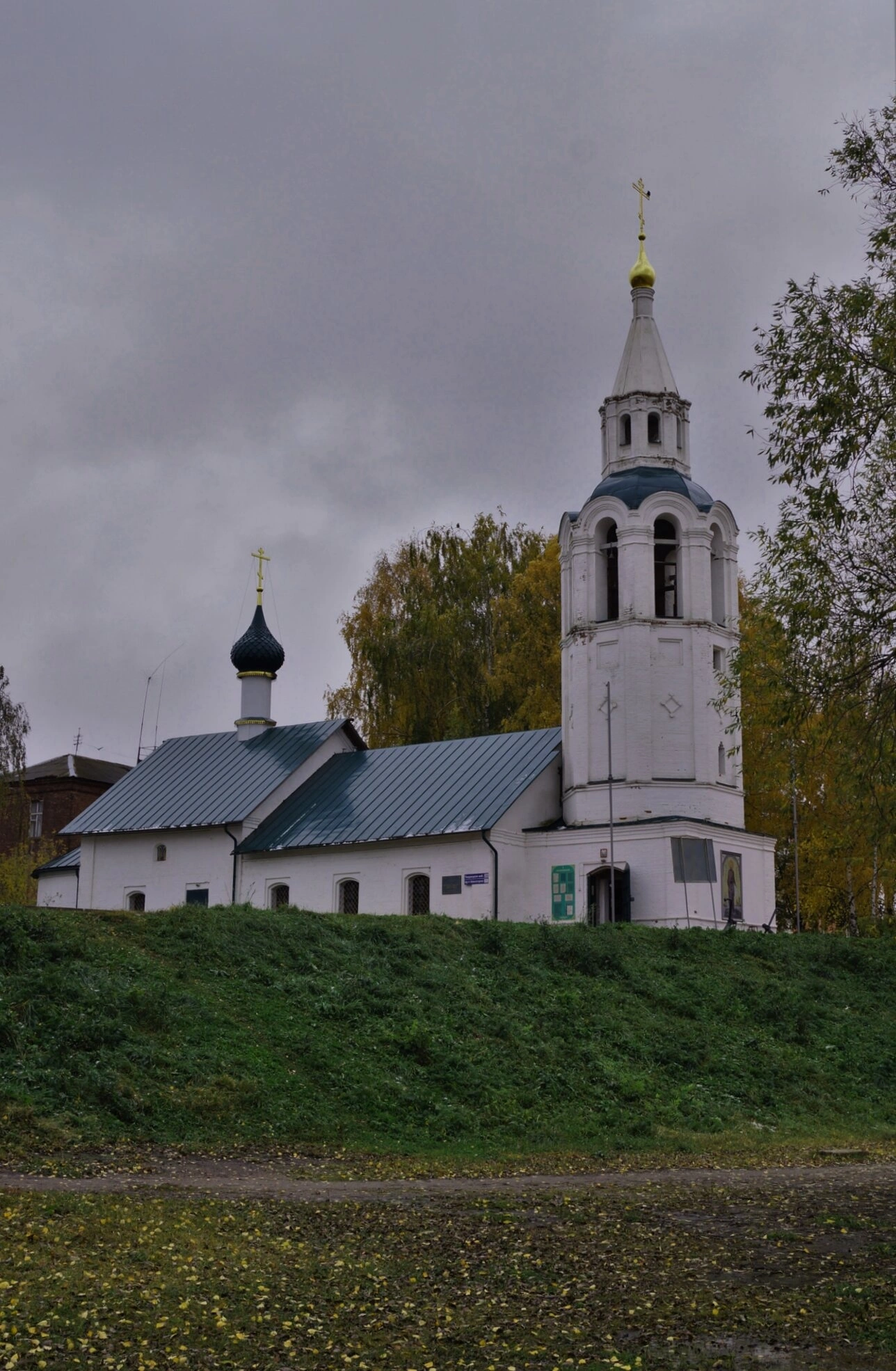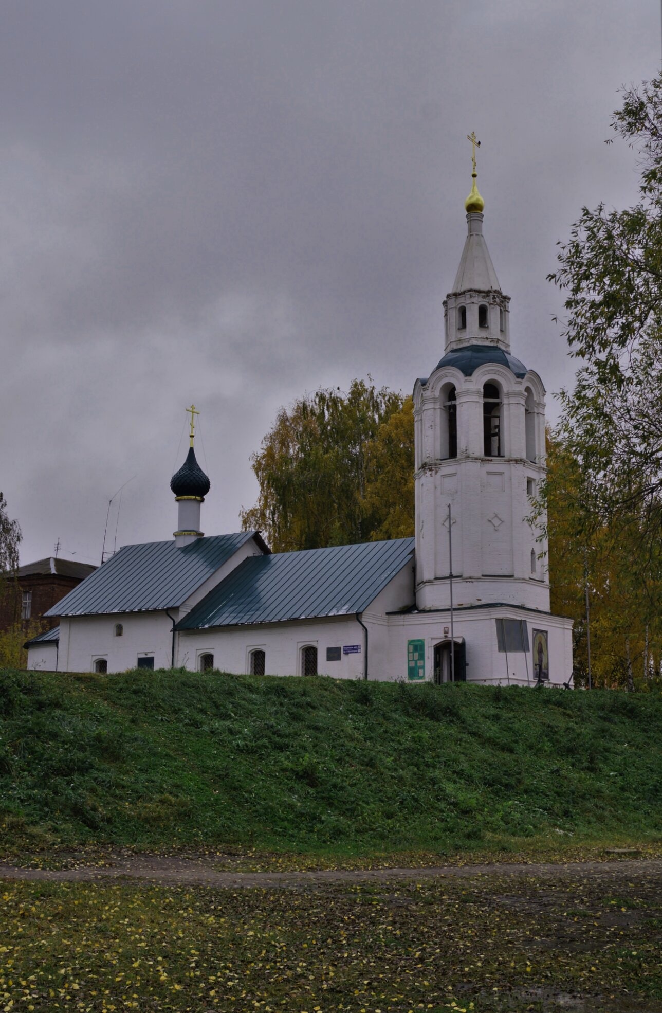 На фотографии запечатлён храм в честь преподобных Зосимы и Савватия, Соловецких чудотворцев, расположенный в историческом районе Тверицы города Ярославля. Святыня возвышается на живописном холме, dominating окружающий пейзаж, что подчёркивает её духовную значимость и архитектурную выразительность.