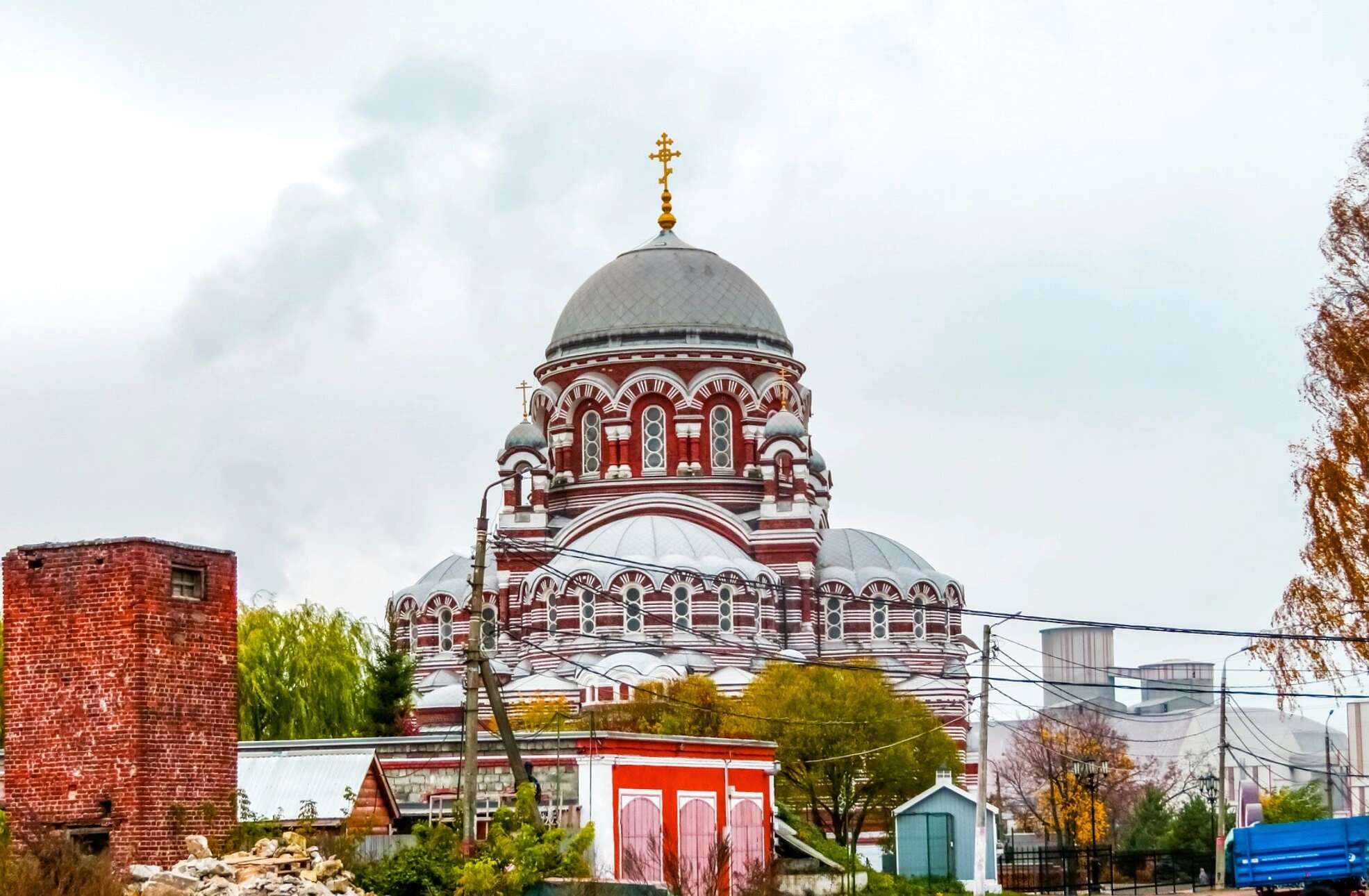 На переднем плане фотографии видны свидетельства ведущихся работ по благоустройству территории, что говорит о непрестанных трудах по возрождению и содержанию святого места. Окружающий пейзаж с деревьями, одетыми в осеннюю листву, и пасмурным небом придаёт снимку особое настроение и глубину. Храм, переживший годы запустения в советский период, ныне действует и является центром духовной жизни православной общины Щурова. Его история неразрывно связана с развитием Щуровского промышленного узла и духовными потребностями его жителей.