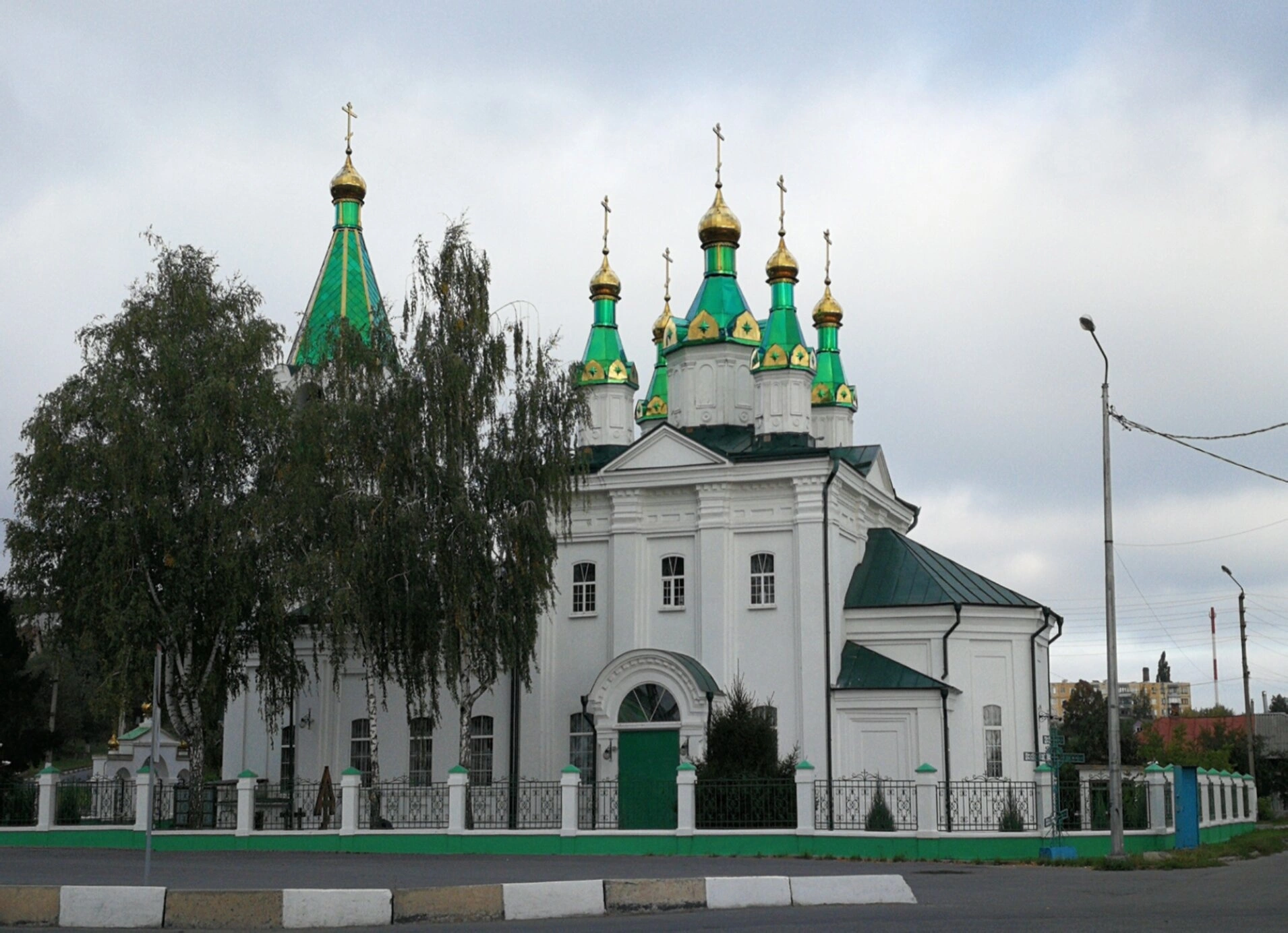 На заднем плане фотографии просматриваются элементы городской инфраструктуры, включая фонарный столб и линии электропередач, что подчёркивает гармоничное соседство духовной жизни и мирской суеты. Пасмурное небо с мягким рассеянным светом создаёт особую, умиротворённую атмосферу, наполняя изображение чувством тишины и благоговения. Данный храм является не только архитектурным достоянием, но и живым свидетельством веры, продолжая многовековую традицию православного благочестия на Белгородской земле.