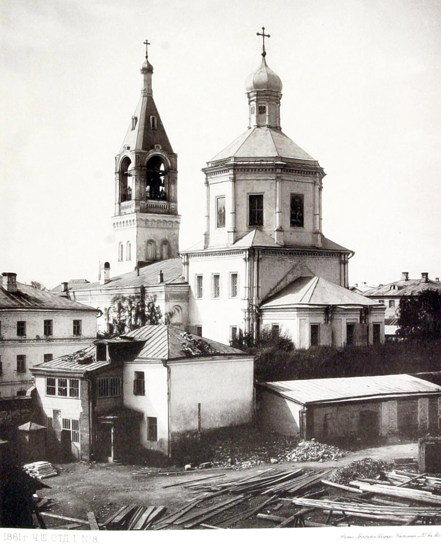 - Храм Пророка Божия Илии в Обыденском переулке на исторической фотографии 1881 года