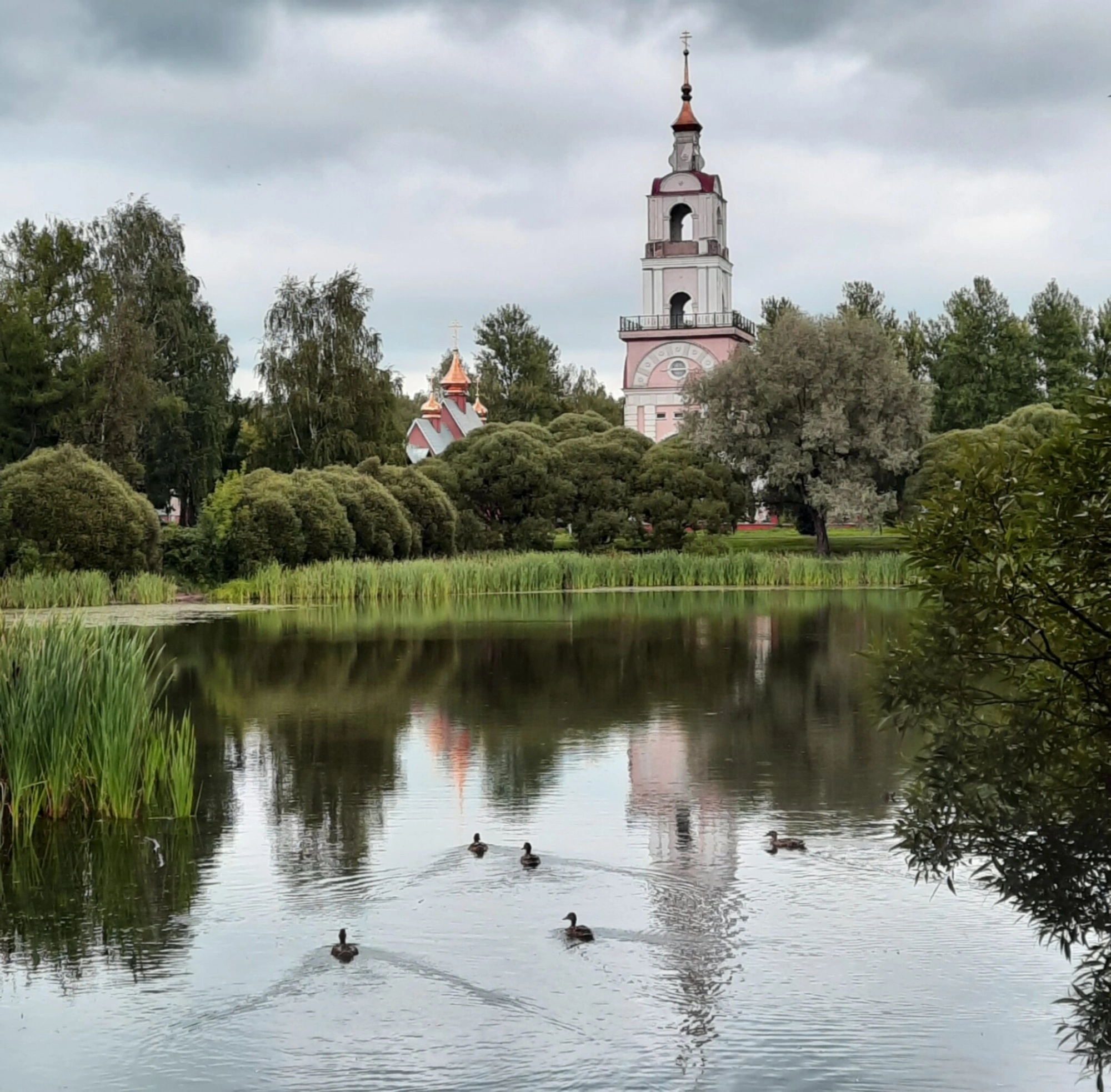 Фотография передаёт тихую красоту этого святого места в пасмурный день. Отсутствие яркого солнечного света придаёт снимку особую глубину и лиричность, а неподвижная вода пруда позволяет зрителю вглядеться в идеальное отражение Дома Божьего. Примечательно, что на переднем плане, среди природного окружения и на водной глади, нет людей, что усиливает ощущение благоговейного покоя и сосредоточенности, навеваемое этим образом. Снимок приглашает к тихому созерцанию, напоминая о вечных ценностях и красоте православной веры, воплощённой в архитектуре русского храма.