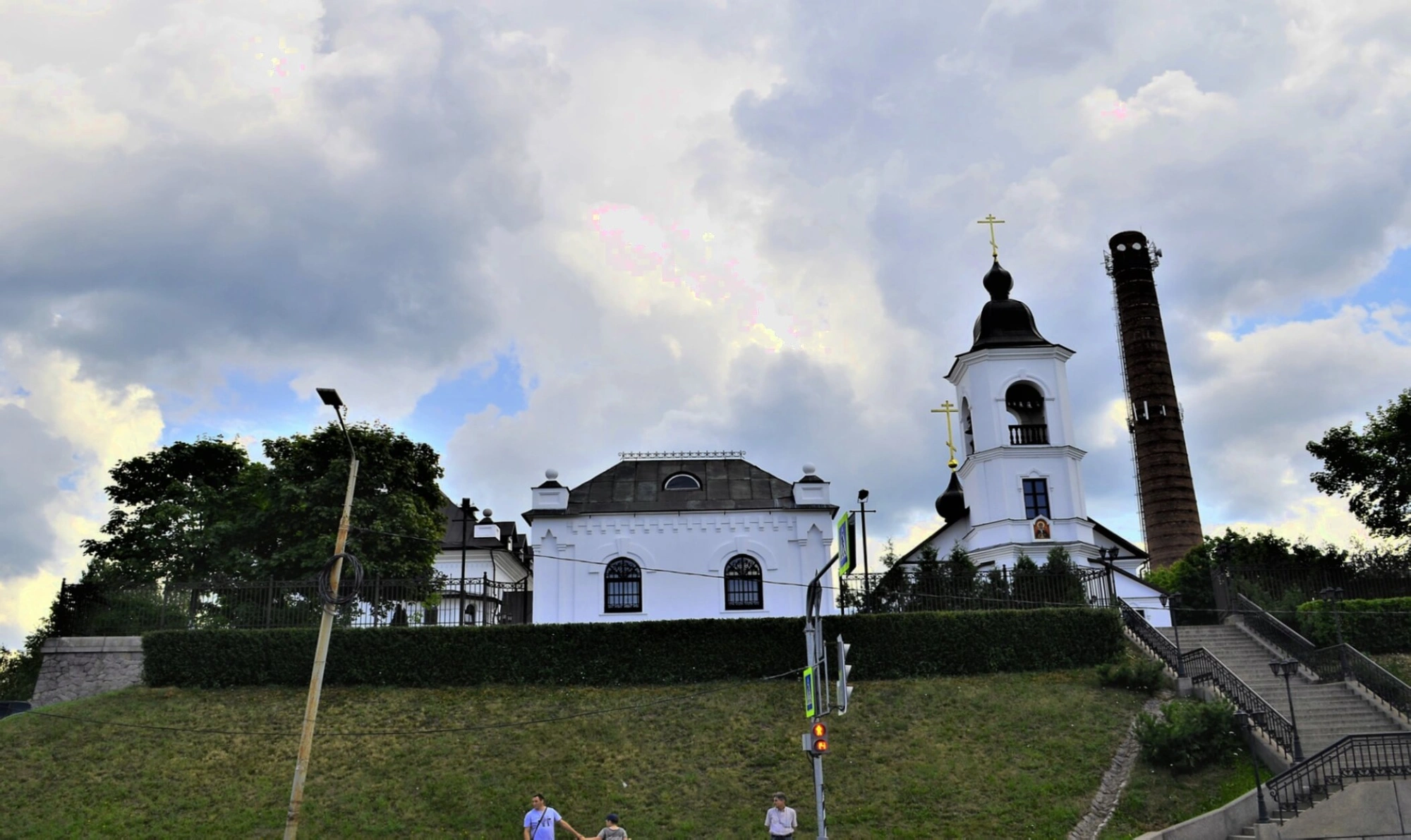 Храм возвышается на скалистом холме, что символично подчёркивает его духовную значимость. К главному входу ведёт высокая каменная лестница, придающая всему архитектурному ансамблю особую торжественность и величие. Рядом с домом Божиим сохранилась историческая кирпичная труба, являющаяся свидетельством сложного индустриального прошлого этих мест.
