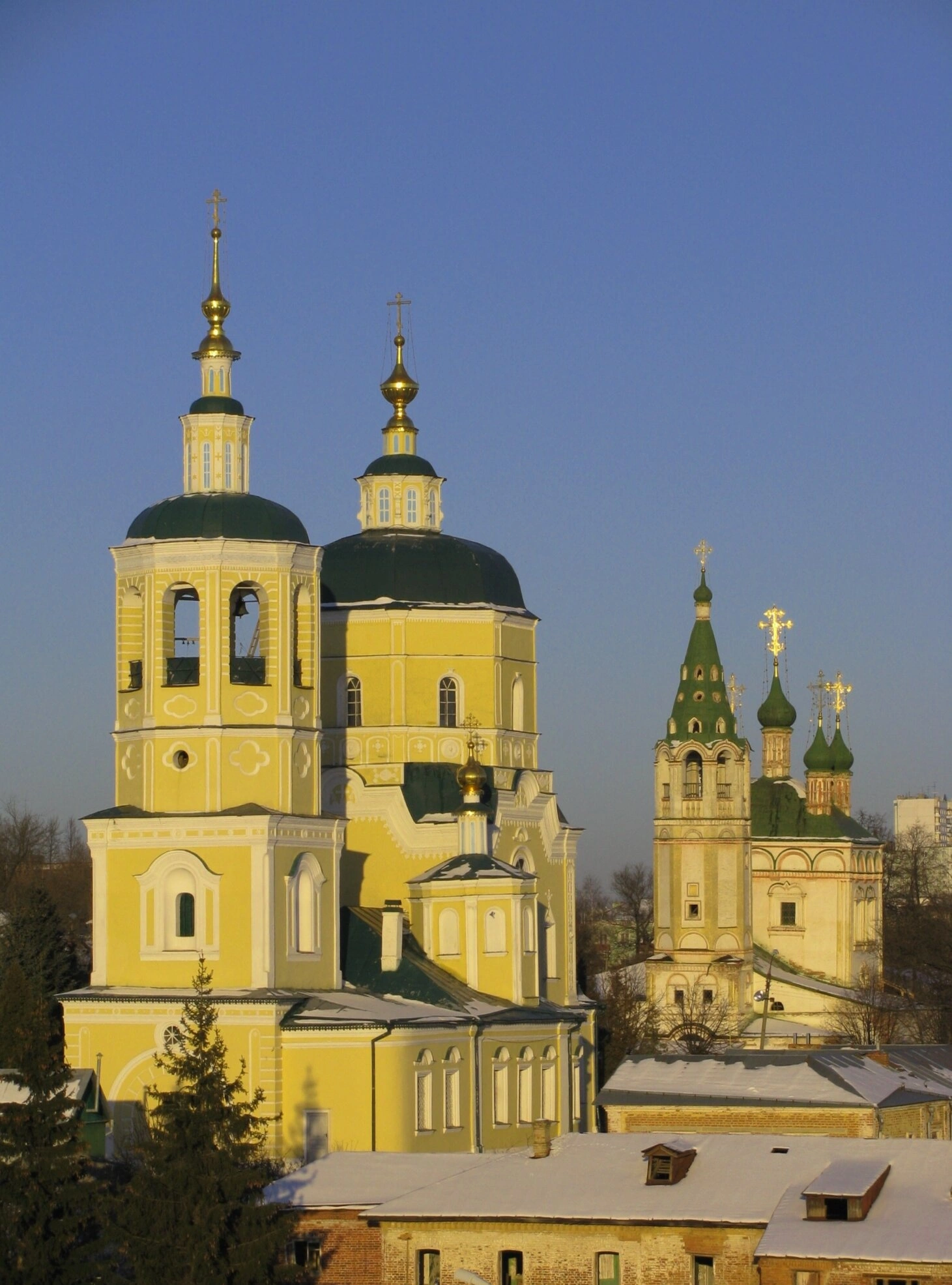 Расположение храма на возвышенности, близ Красной (Соборной) горы и знаменитого Серпуховского кремля, делает его одной из ключевых доминант православного Серпухова. Фотография передаёт не только архитектурную красоту, но и атмосферу благодати и вечности, свойственную этому священному месту.