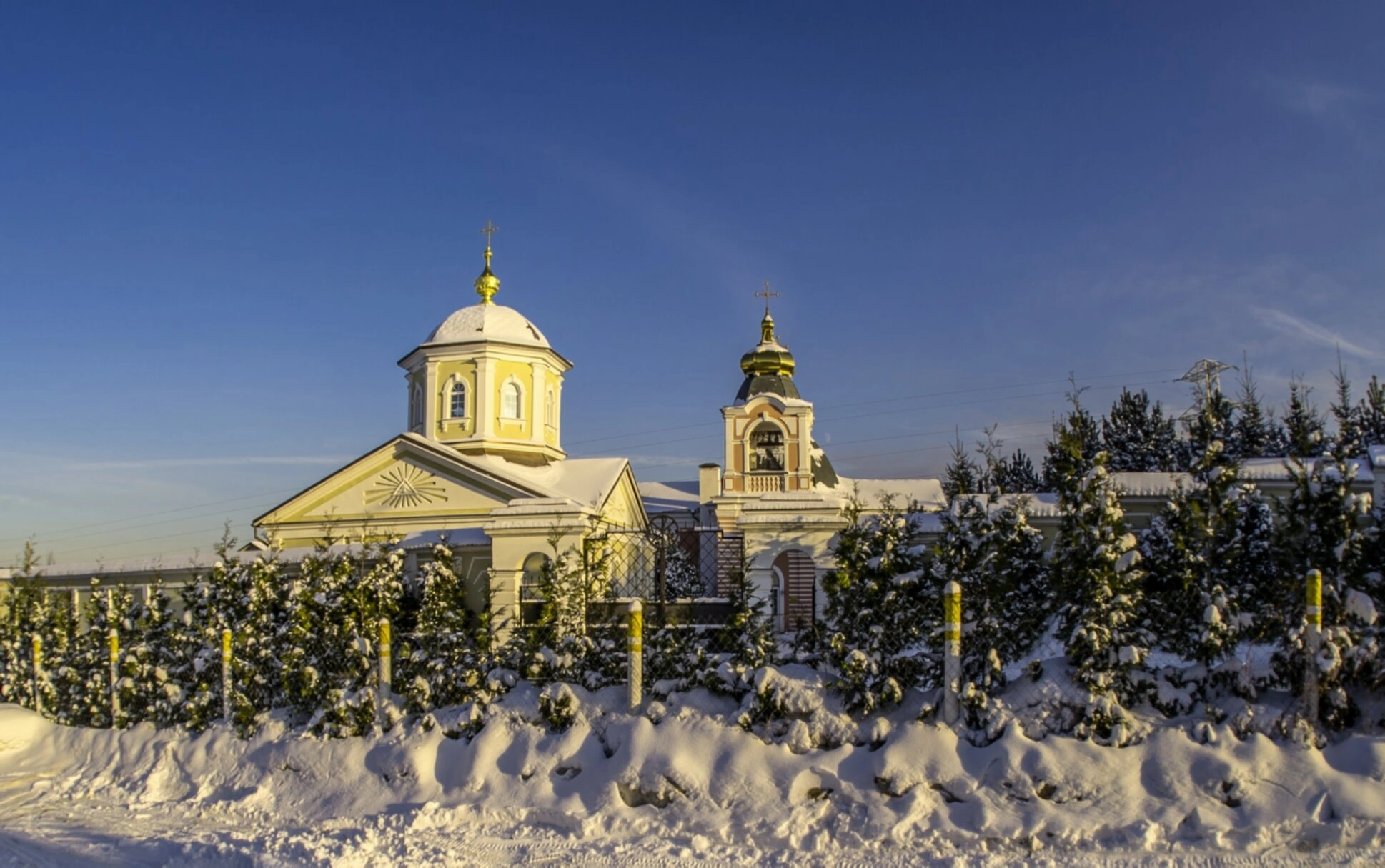 На представленной фотографии запечатлён храм в честь святого пророка Божия Илии, расположенный в селе Лемешово близ Подольска. Снимок передаёт благоговейную атмосферу зимнего дня, когда обильный снег укутал землю, ветви хвойных деревьев и кровлю церкви, создавая картину умиротворения и тишины.