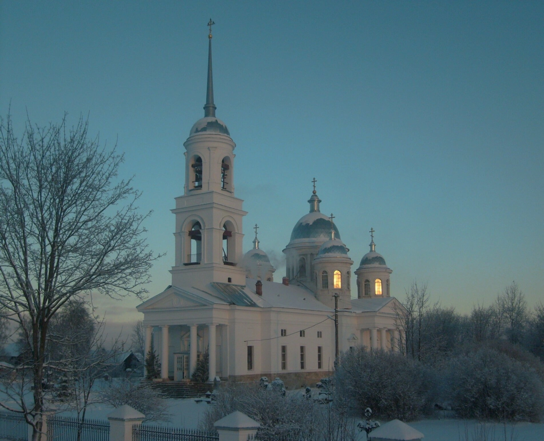 Фотография передаёт не только внешнюю красоту архитектурных форм, но и глубокий символический смысл: свет веры, сияющий во тьме, и твёрдость духа, непоколебимую перед лицом любых испытаний. Этот образ напоминает о вечных ценностях и непреходящей красоте православной традиции, сохраняемой в русской глубинке.