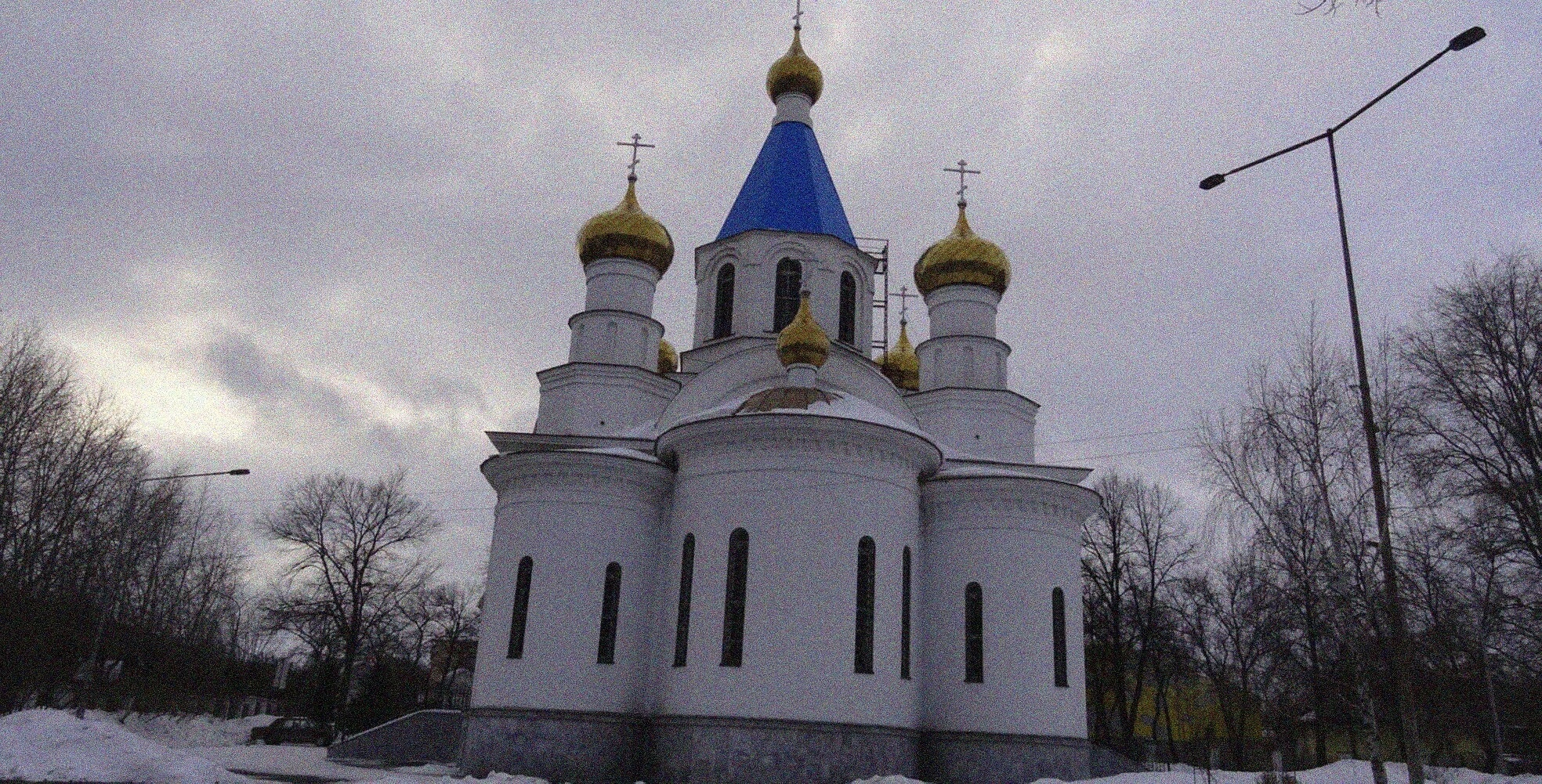 Зимний пейзаж, окружающий церковь, добавляет снимку особой благоговейной тишины и умиротворения. Деревья, лишённые листвы, сквозь свои ветви будто благословляют святую обитель, а снежный покров окутывает землю чистым покровом, символизируя непорочность и очищение. Уличные фонари и элементы благоустройства говорят о том, что храм находится в городской среде, оставаяся духовным оазисом для всех страждущих.