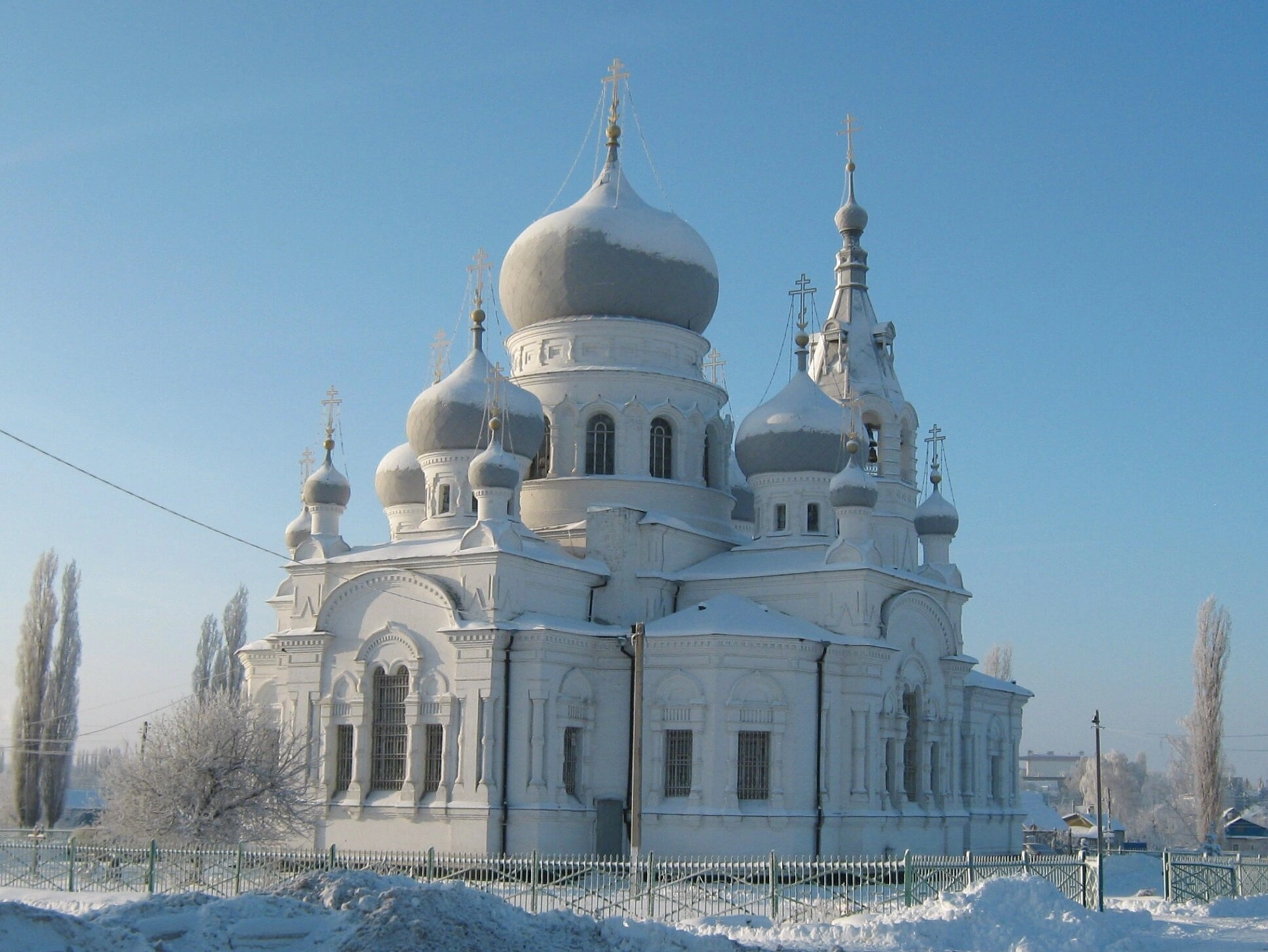 Белоснежные стены храма и сверкающие на морозном солнце купола с крестами создают образ неземной красоты и духовной чистоты. Архитектура церкви представляет собой традиционный русский храмовый стиль с характерным пятиглавием, символизирующим Господа нашего Иисуса Христа в окружении четырёх евангелистов.